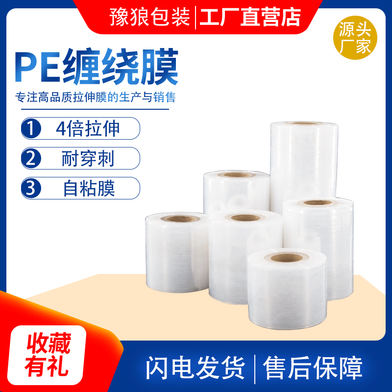 豫狼包装フィルムpeストレッチフィルム50自己接着包装フィルム透明プラスチックフィルム小巻きフィルムメーカー