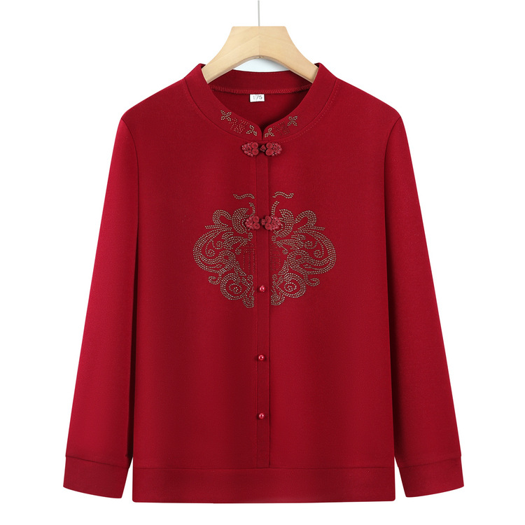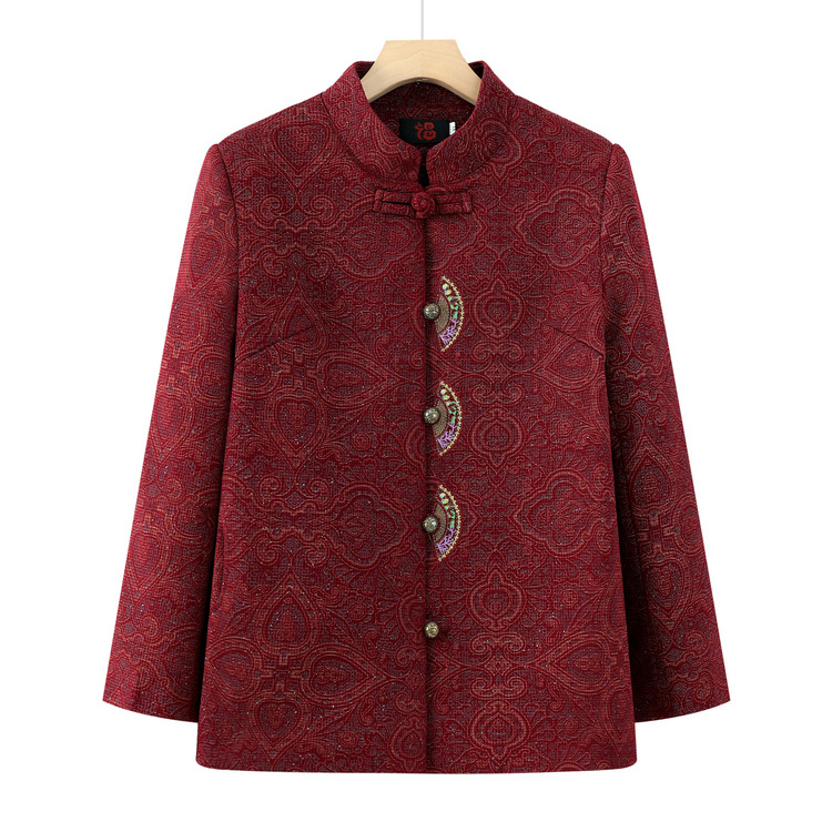 中高年の春の服のコートの女性のおばあさんは春秋の子供の70歳のおばあさんの唐の服のお母さんの中国風の上着を詰めます。