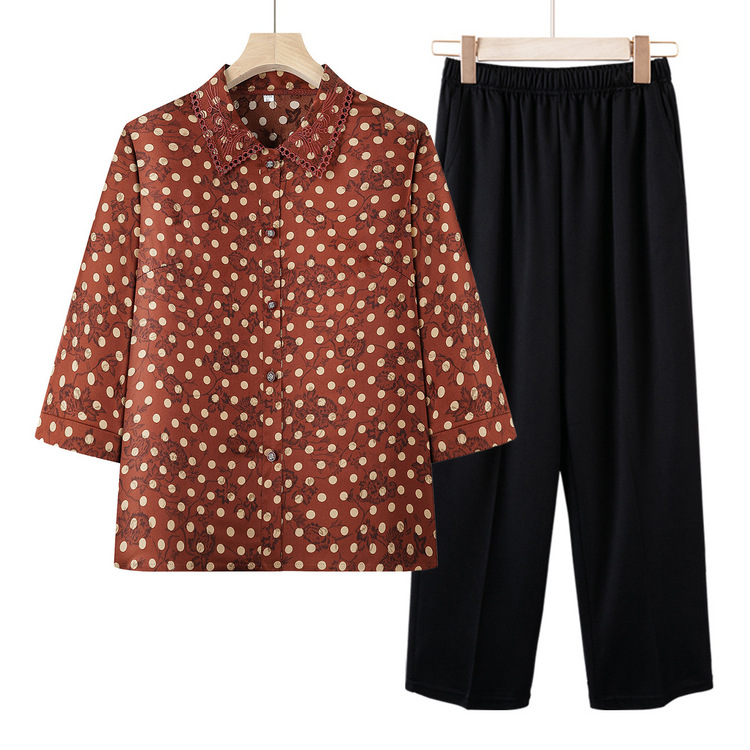 お母さんの春秋の薄いタイプのシャツの老年の婦人服のおばあさんは長袖のスーツのおばあさんの夏の洋風の老人の服を詰めます。