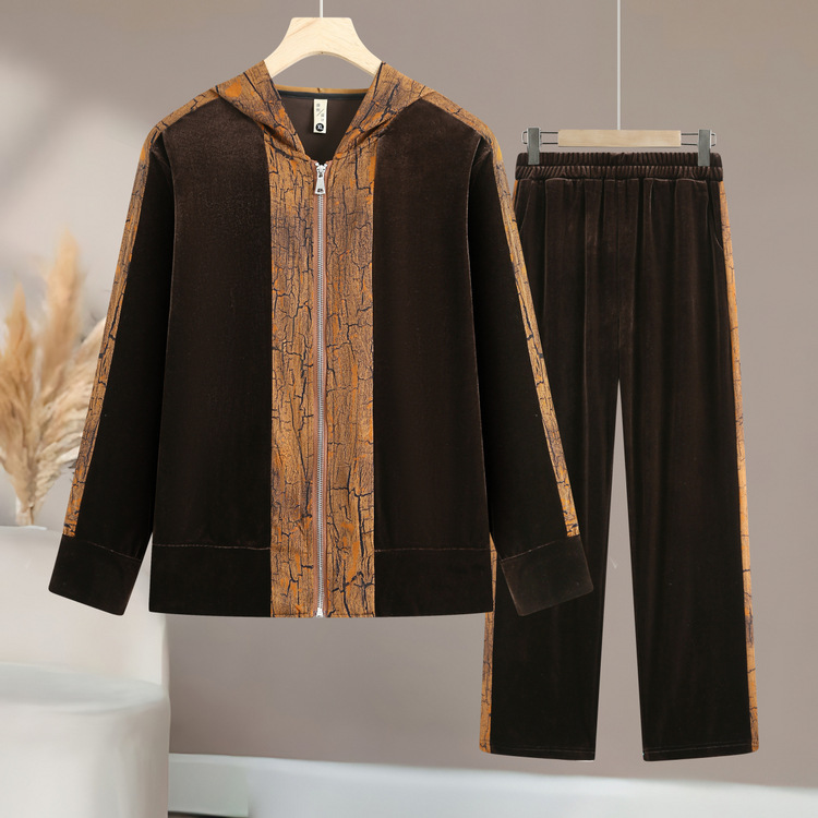 おばあさんの春の装いの金のベルベットのカーディガンのスーツの女性のお母さんの気質のファッションのコートの新型の老人のレジャーのスポーツの服