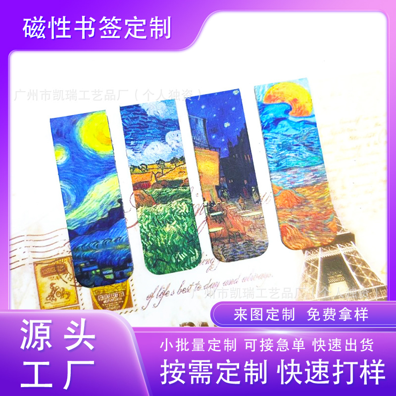 1688ゴッホ磁気ブックマーク卸売り創意キャンパス文創軟磁性ブックマーク紙両面二つ折り磁気カードブックマーク