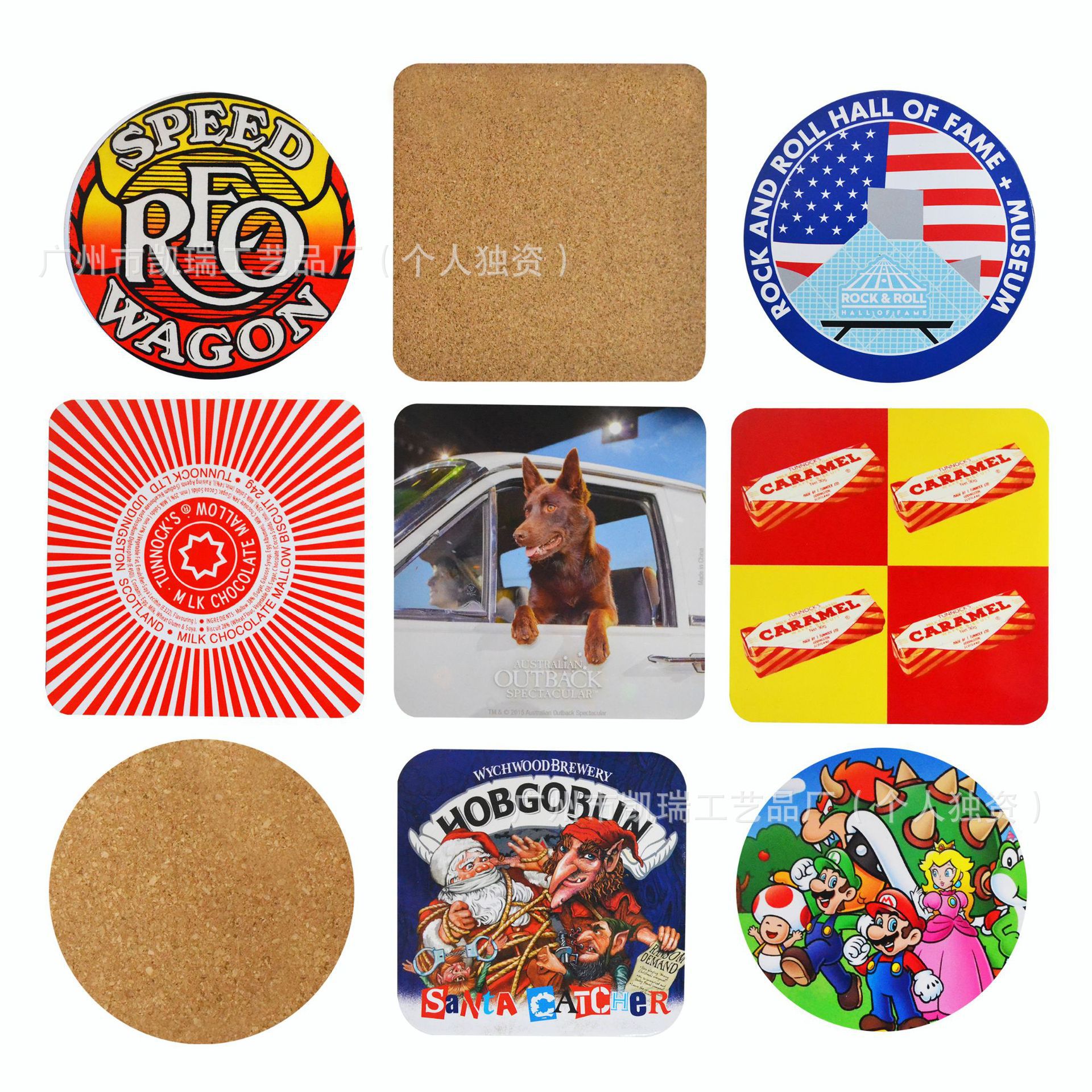1688UVコルクシルク印刷コースター卸売漫画MDF中繊維板ホテルレストラン滑り止め断熱食器