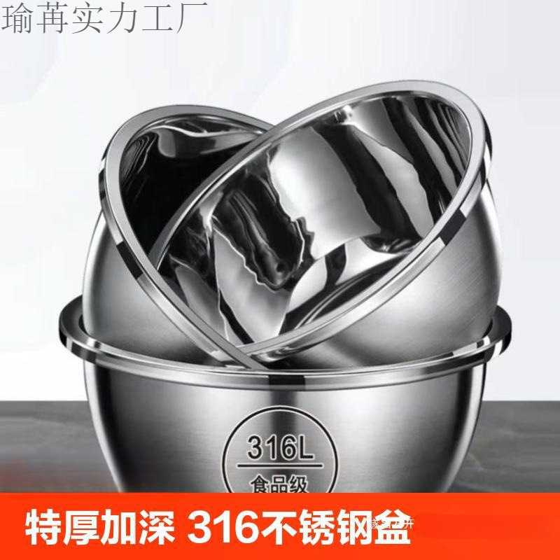 極厚深型316ステンレス製洗面器、野菜洗い、魚煮、油洗い、調理用キッチン麺スープ洗面器、丸型