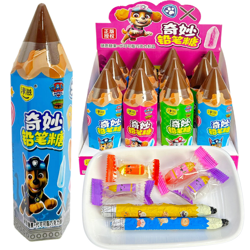 子供の趣味のワンワンチームが大功を立てて果物の味の鉛筆の砂糖のチョコレートのペンの子供の間食の贈り物の賞品を混合します。