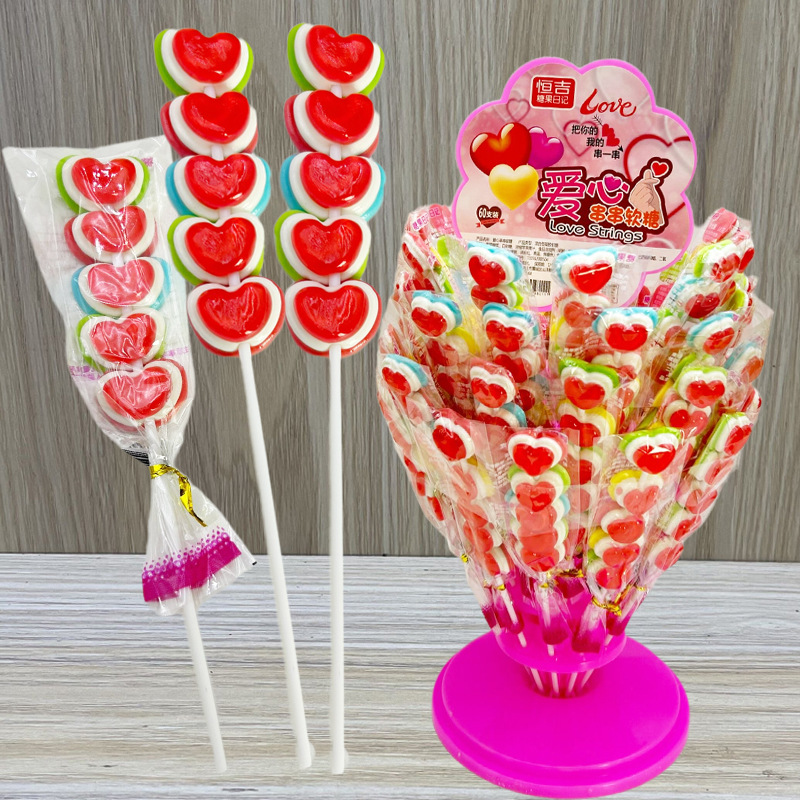 子供のハート型砂糖漬け串焼きグミブーケスタンドロリポップ誕生日テーブル卸売
