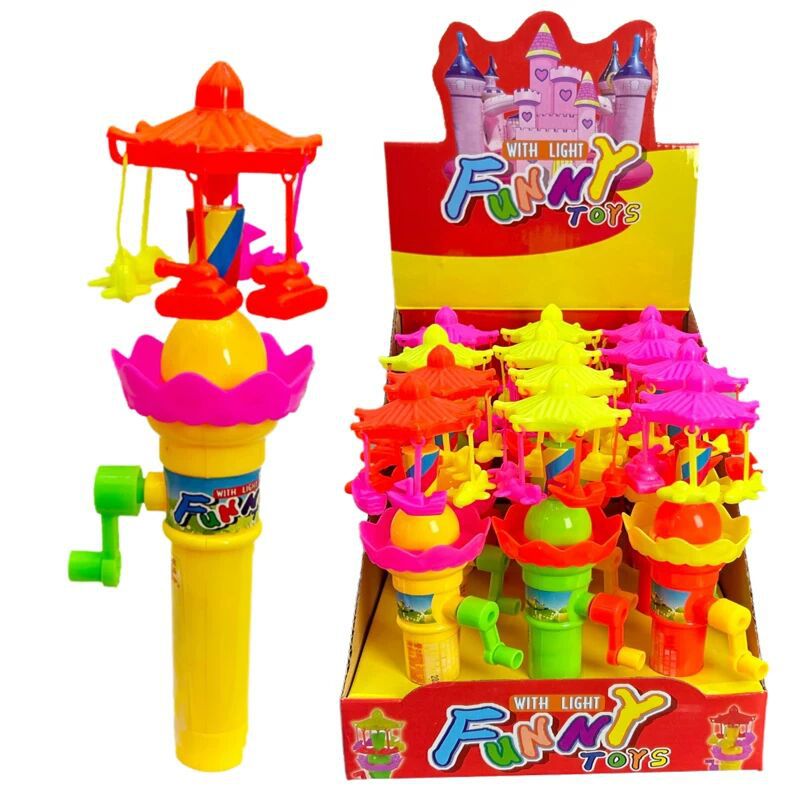 子供の趣味はキャンディーのおもちゃの手を振って回転します。