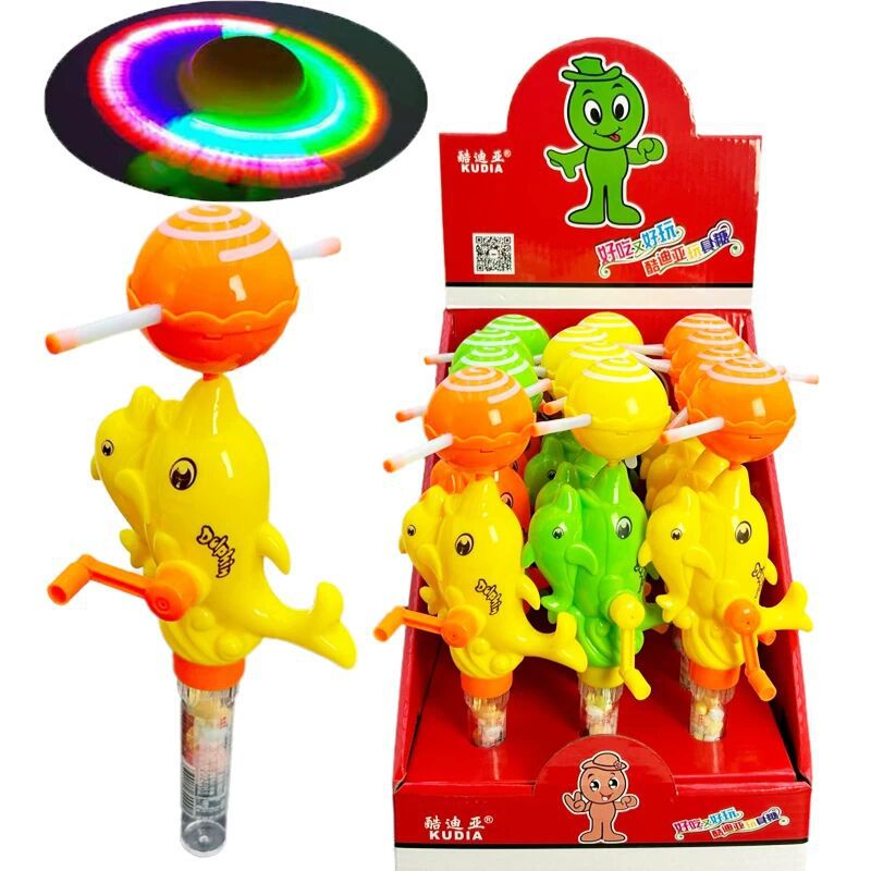 子供用のキャンディーのおもちゃは赤ちゃんをあやします。かわいいイルカの形は手を振って回転します。