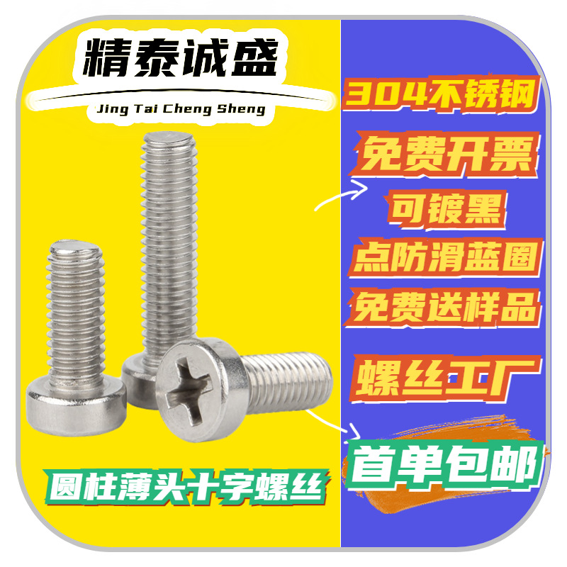 現物304ステンレス低頭十字溝機歯ねじ円柱頭薄頭十字ねじボルト卸売り