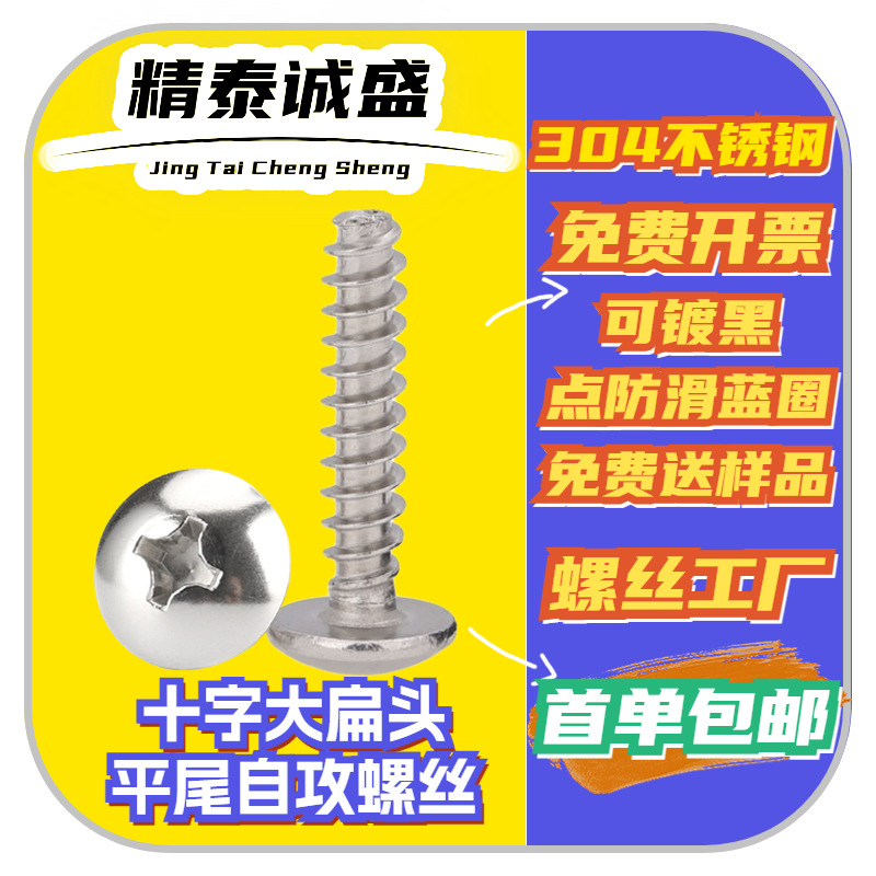 304ステンレス平頭平尾自攻傘頭キノコ頭ねじ十字大平頭平尾自攻ねじ