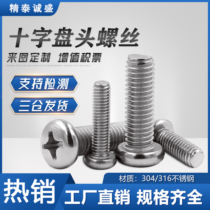 メーカー直供304ステンレス十字盤頭ねじyb818丸頭ねじ丸頭機糸盤頭ねじ