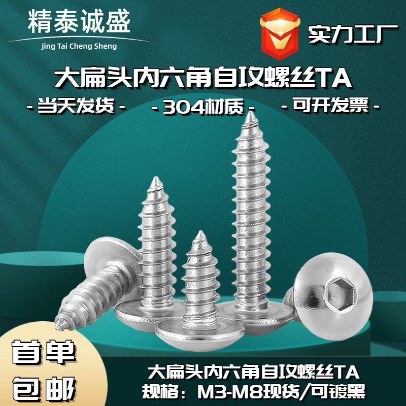 304ステンレス超薄大平頭タッピングねじ平頭タッピング釘薄平頭内六角タッピングねじ