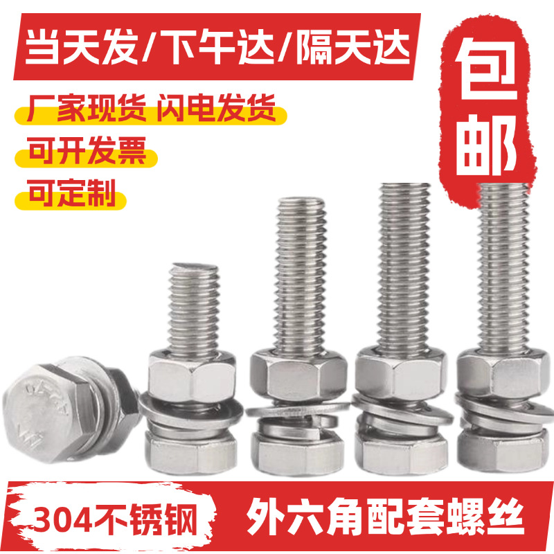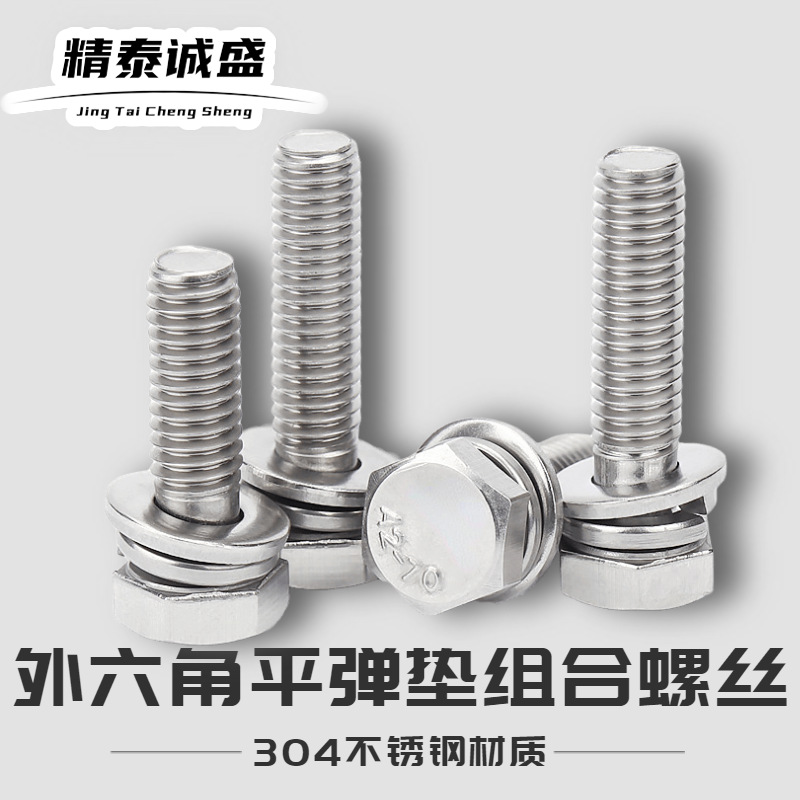 304ステンレスM3-M12六角頭セットボルトgb9074.17外六角平弾マット三組み合わせねじ