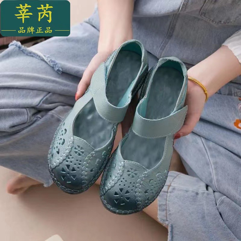 1688本革の穴の靴の夏のタイプの女性靴の快適な柔らかい底の滑り止めの平底の中で老人のお母さんの靴の頭のサンダルの女性