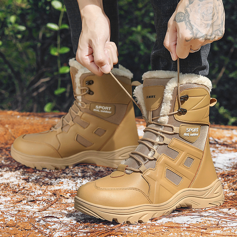 山系アウトドア登山靴メンズ雪地靴潮牌中筒とベルベットの保温綿靴が砂漠に登って靴を訓練する