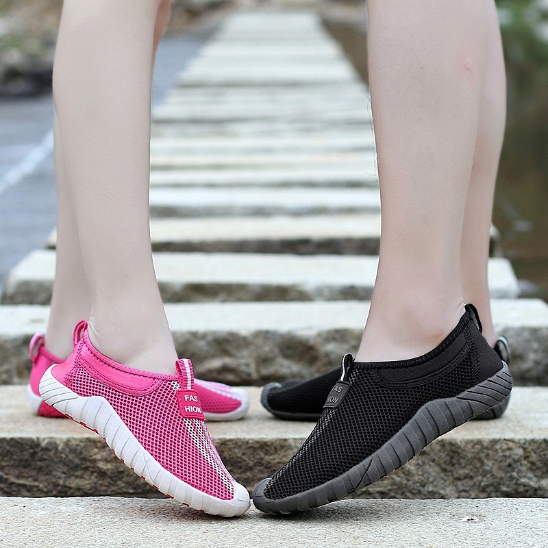 ロートップアウトドアスポーツ通気性メッシュシューズスリッポンカジュアルファッション怠惰な靴軽量ノンスリップウォーキングカップルシューズ