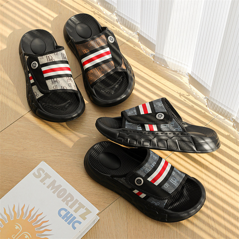 男性用サマースリッパ、カジュアル、夏、多用途、ファッショナブルなスリッパ、アウターウェア、滑り止めビーチスリッパ、男性用トレンディブランド、ライトラグジュアリー