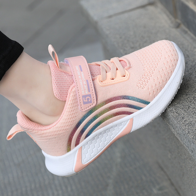 春と秋の子供靴、女の子スポーツシューズ、通気性のあるダブルメッシュシューズ、軽量韓国風女の子ランニングシューズ、中型および大型子供靴