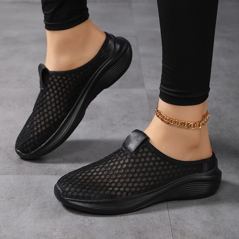 2025 夏の女性のアウトドアハーフスリップカジュアルアウトドアシューズクロスボーダービーチ怠惰なワンステップ通気性メッシュシューズ