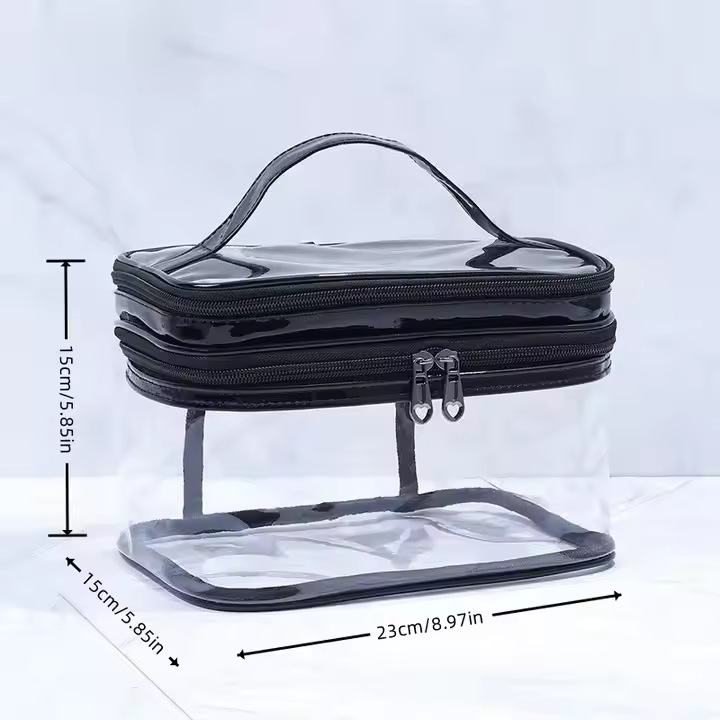 透明二重化粧バッグ大容量携帯に便利多機能洗面収納バッグ防水ファスナー手提げ袋