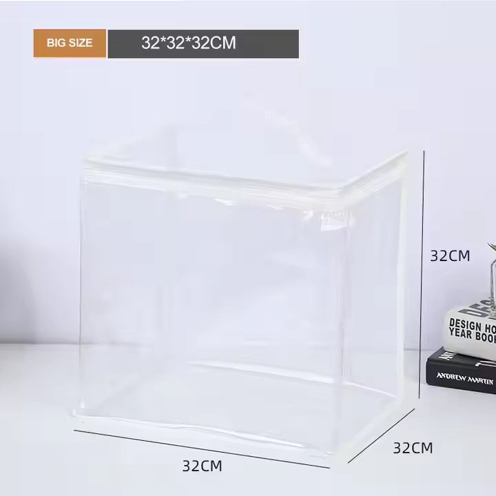 透明PVC防塵ダブルスリットジッパー化粧スキンケアバッグ毛布収納手提げ袋子供玩具整理袋