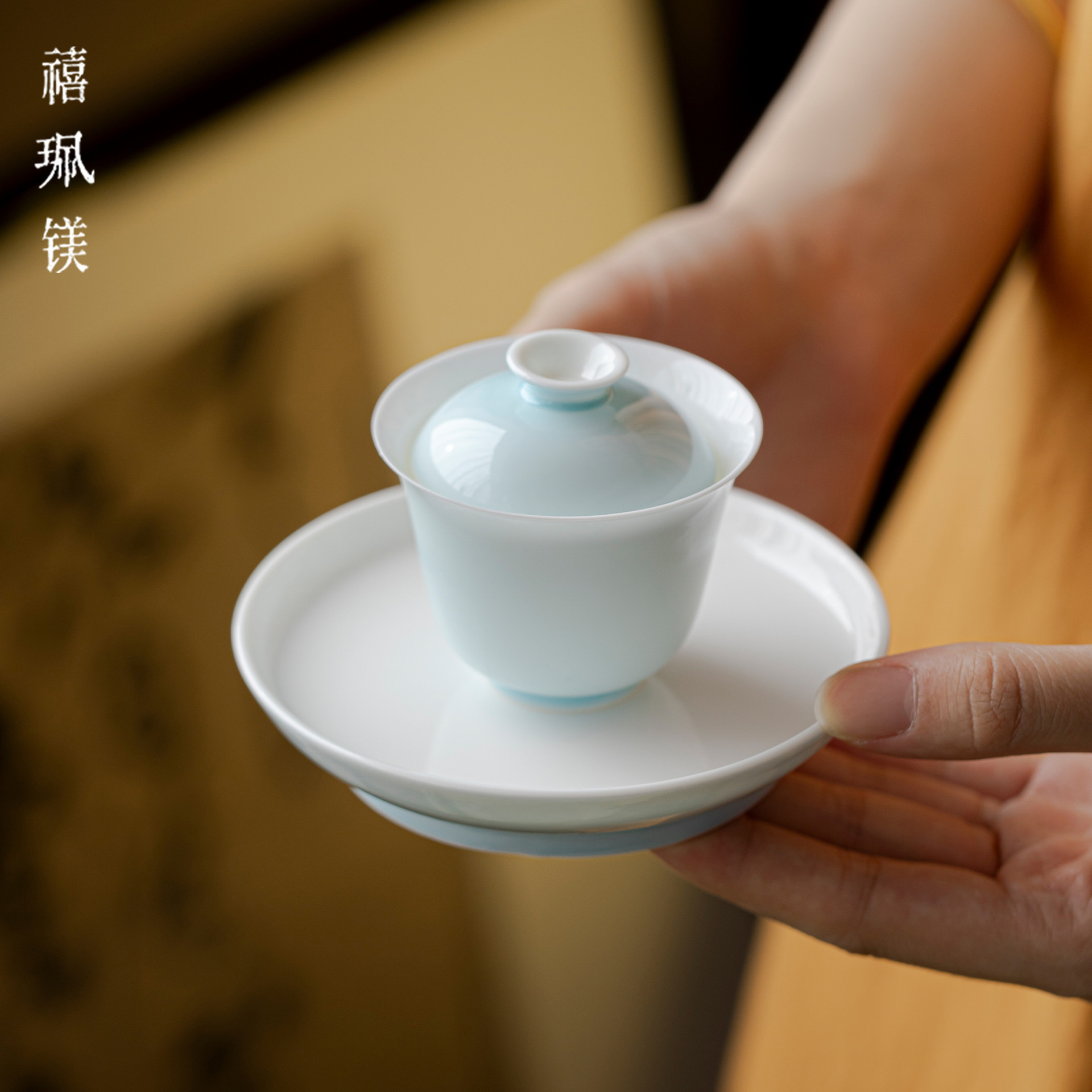 禧マグネシウム西子藍蓋碗陶磁器純色二才茶碗岩茶小容量茶を入れます。