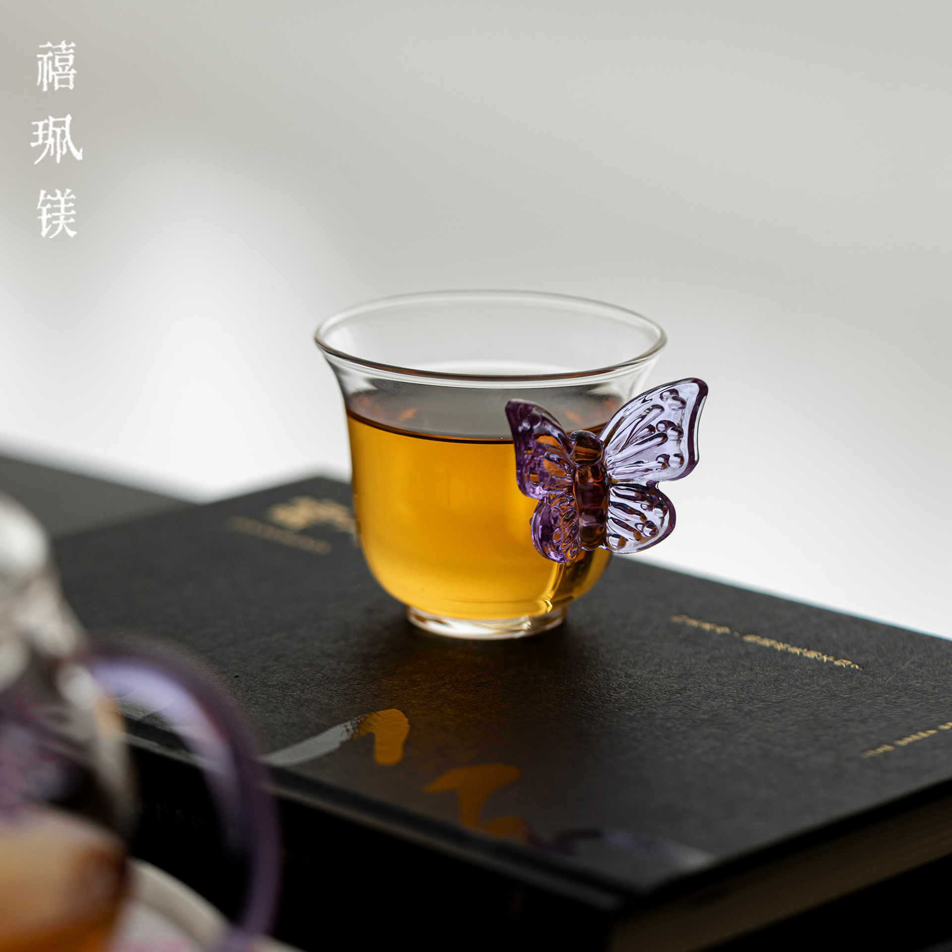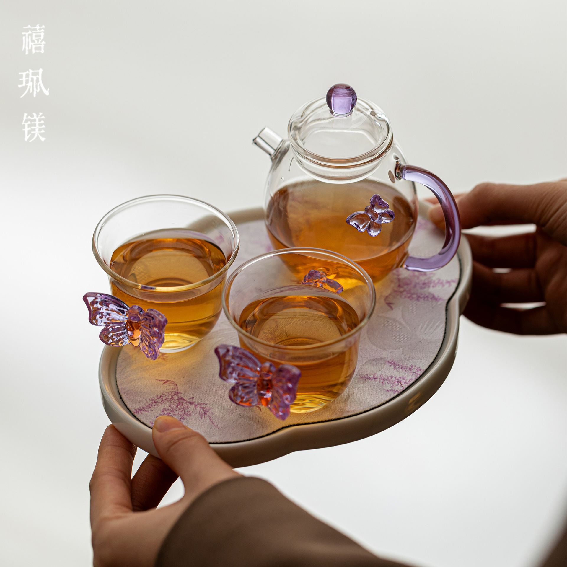 禧マグネシウム高颜値蝶ガラス一壺二杯壺承セット高温泡茶器女性の親友がお茶を飲む