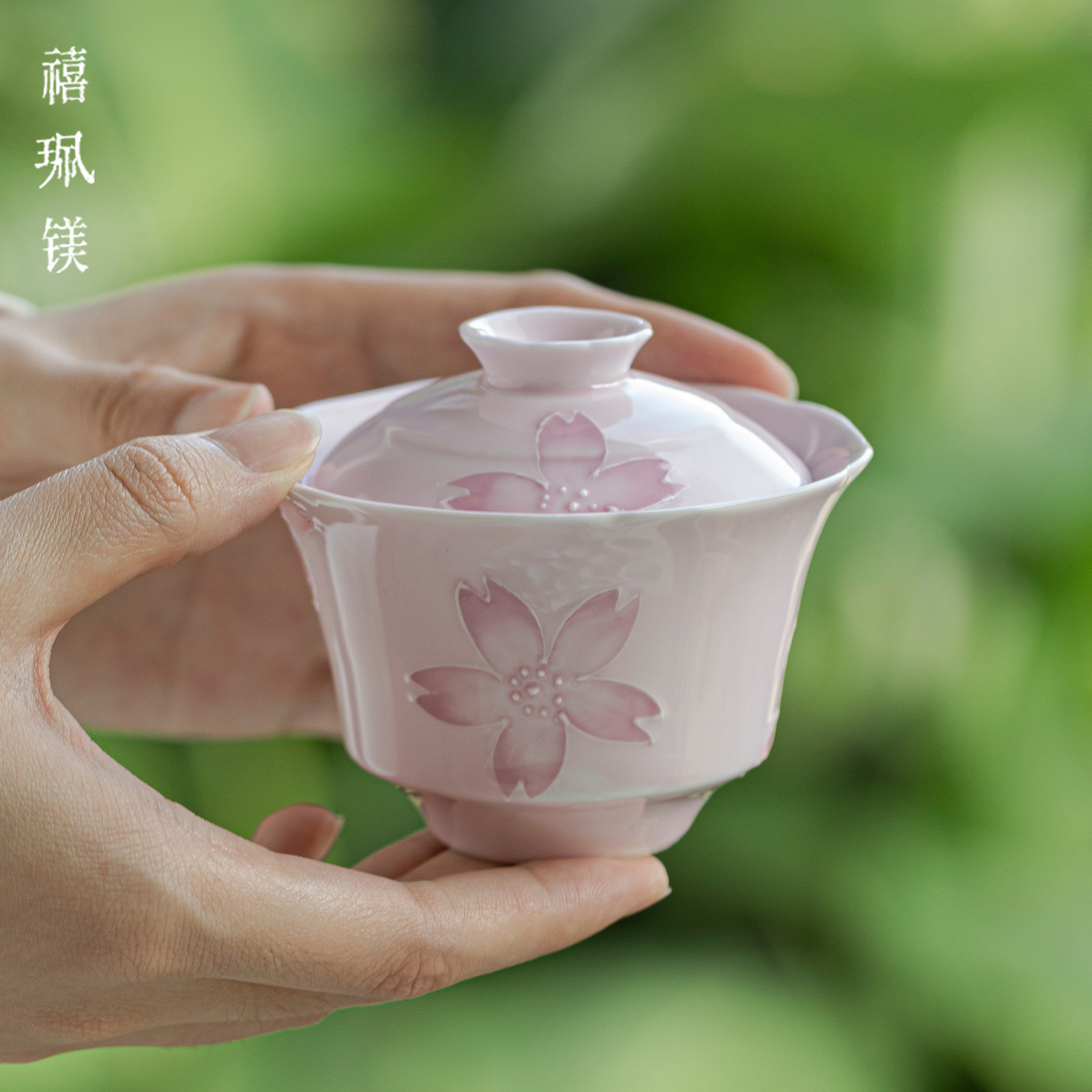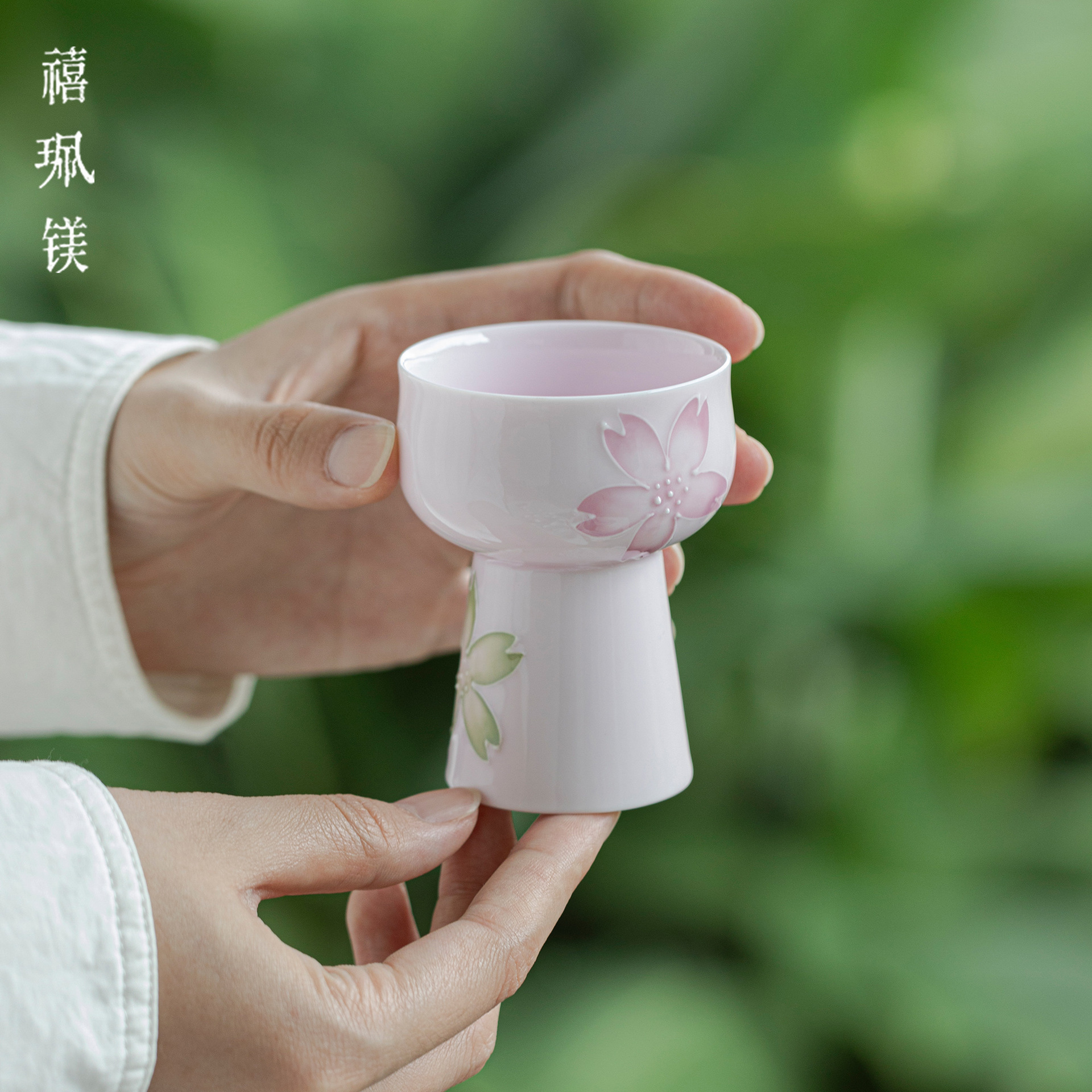 禧マグネシウム有田焼高足主人杯陶磁器釉薬下彩ピンク桜茶杯品茗杯女性用シングルカップ