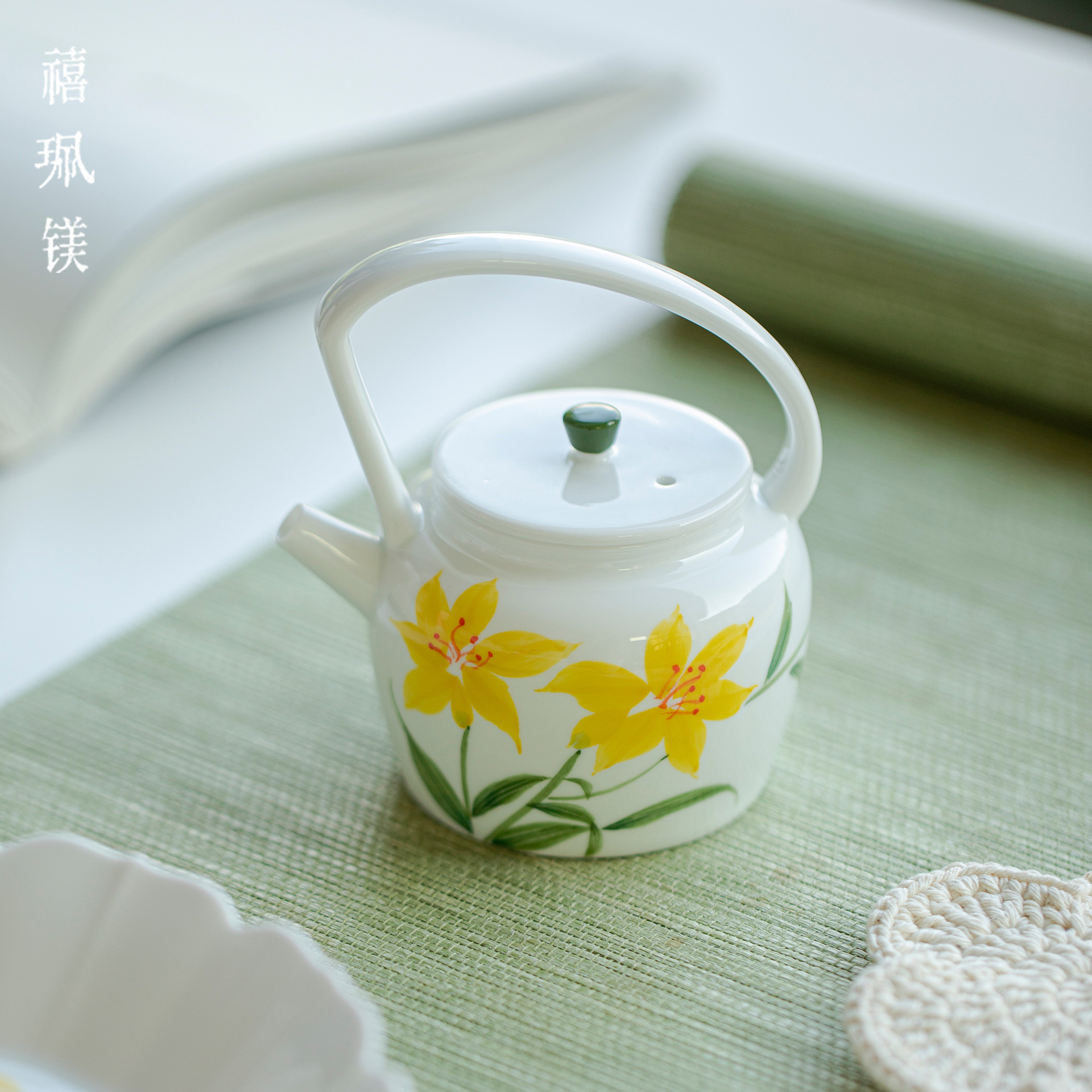 禧マグネシウム玉泥手描きアイリス斜めに梁壺さん専用陶磁器茶器家庭用ティーポット