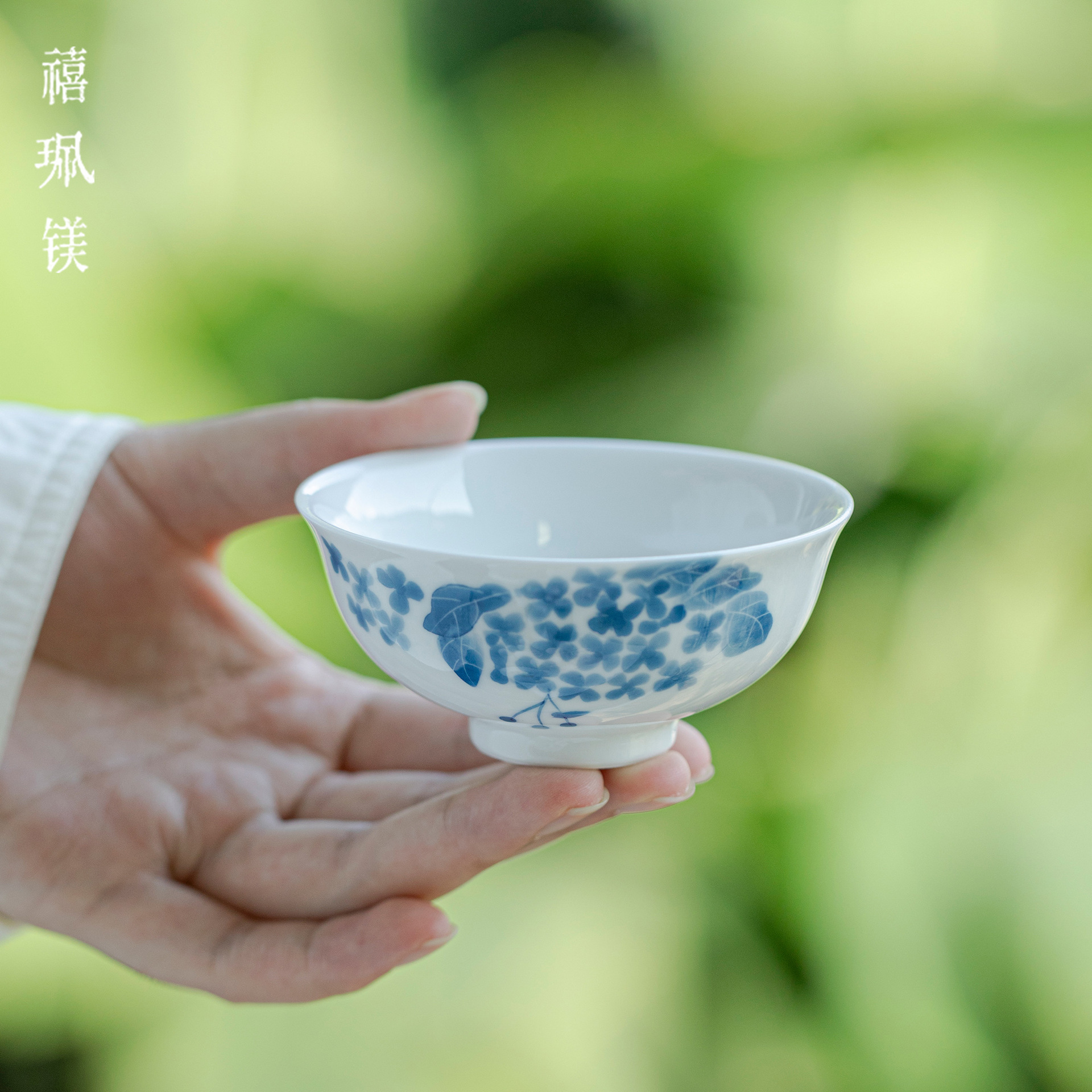 禧マグネシウム釉薬下彩手描き青花アジサイ主人杯日本式家庭用個人大容量ティーカップ