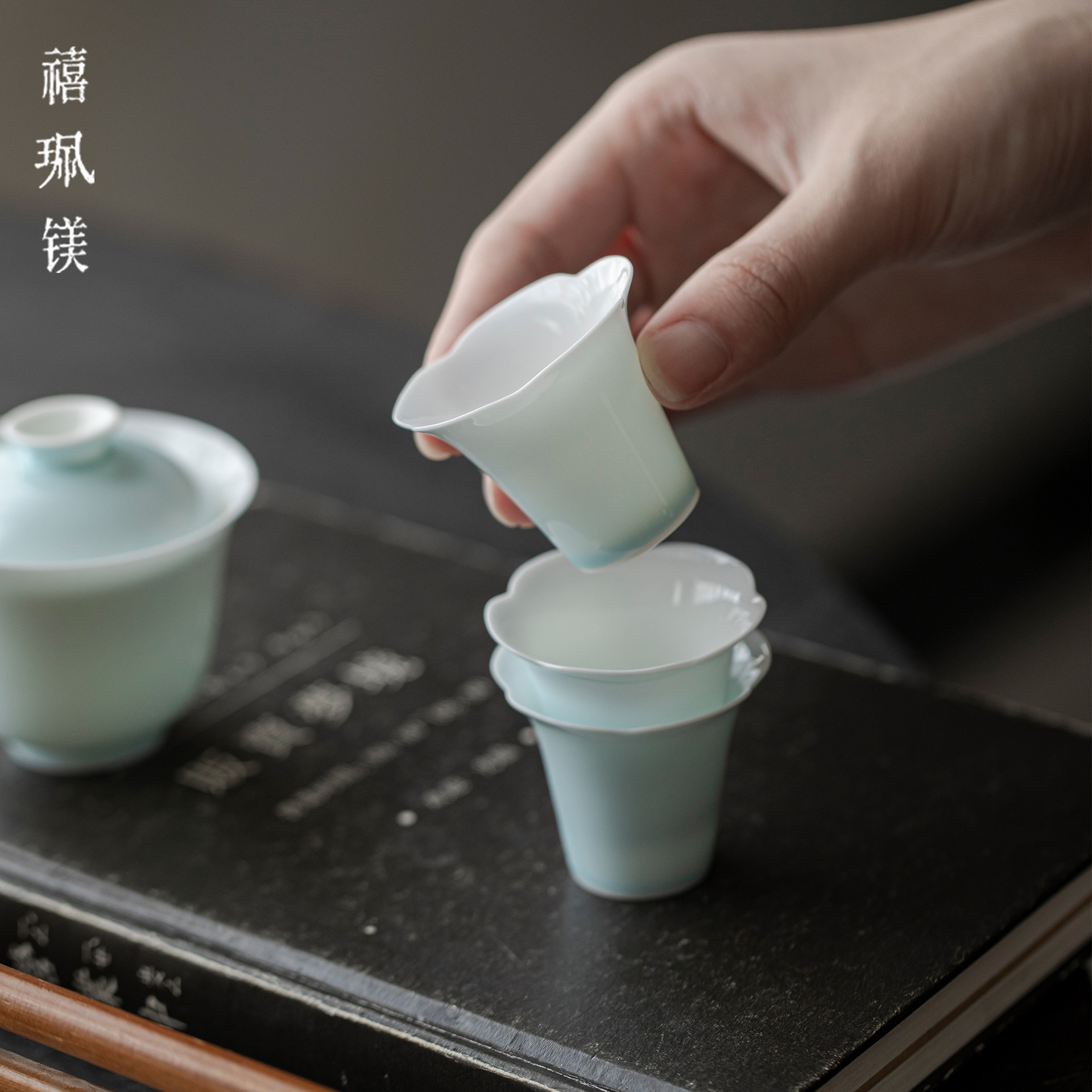 禧マグネシウム釉薬下彩西子藍花口品茗杯陶磁器小容量個人はお茶を飲みます。