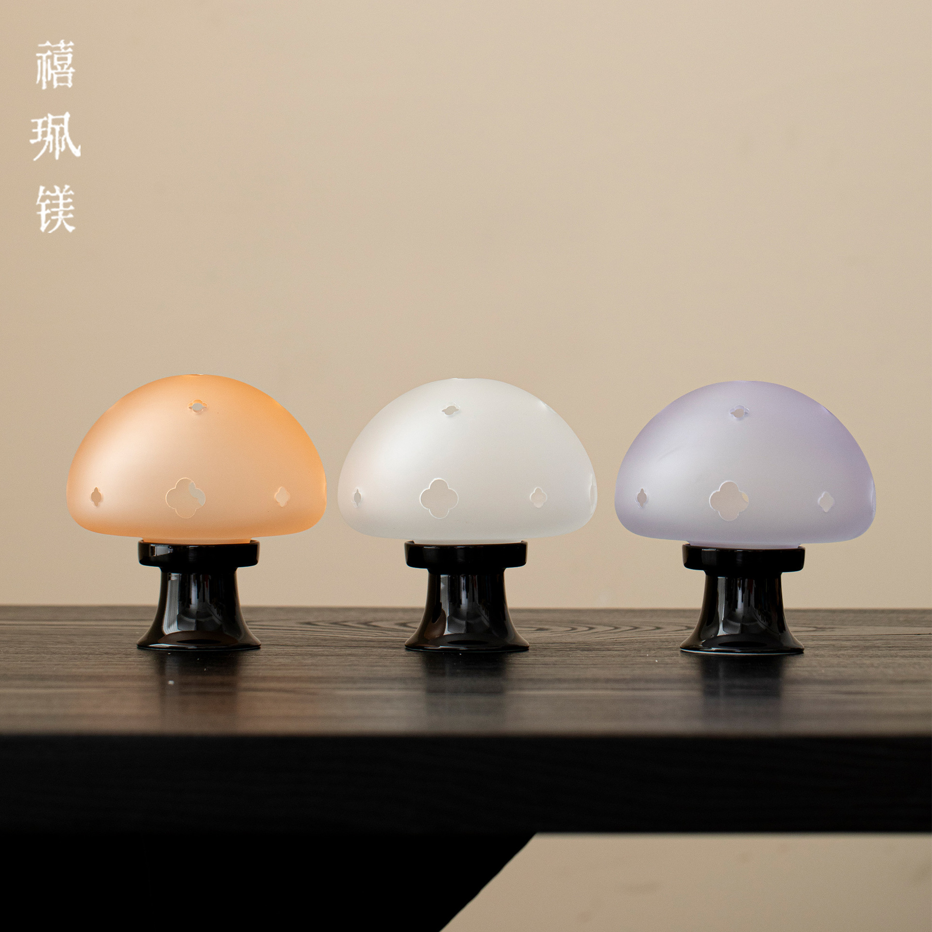 禧マグネシウムろうそく燭台家庭用アロマガラス置物かわいいキノコ灯雰囲気灯小夜灯茶室民宿