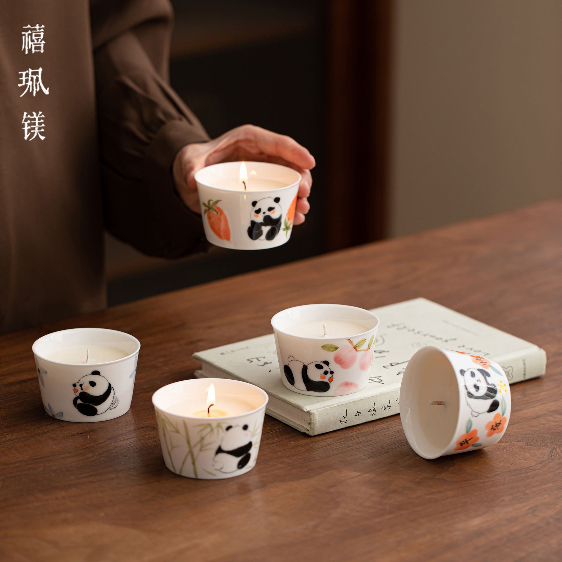 禧マグネシウムかわいいパンダ香薫ろうそく癒し系陶磁器ココアカップ茶室室内香薫長持ち置物