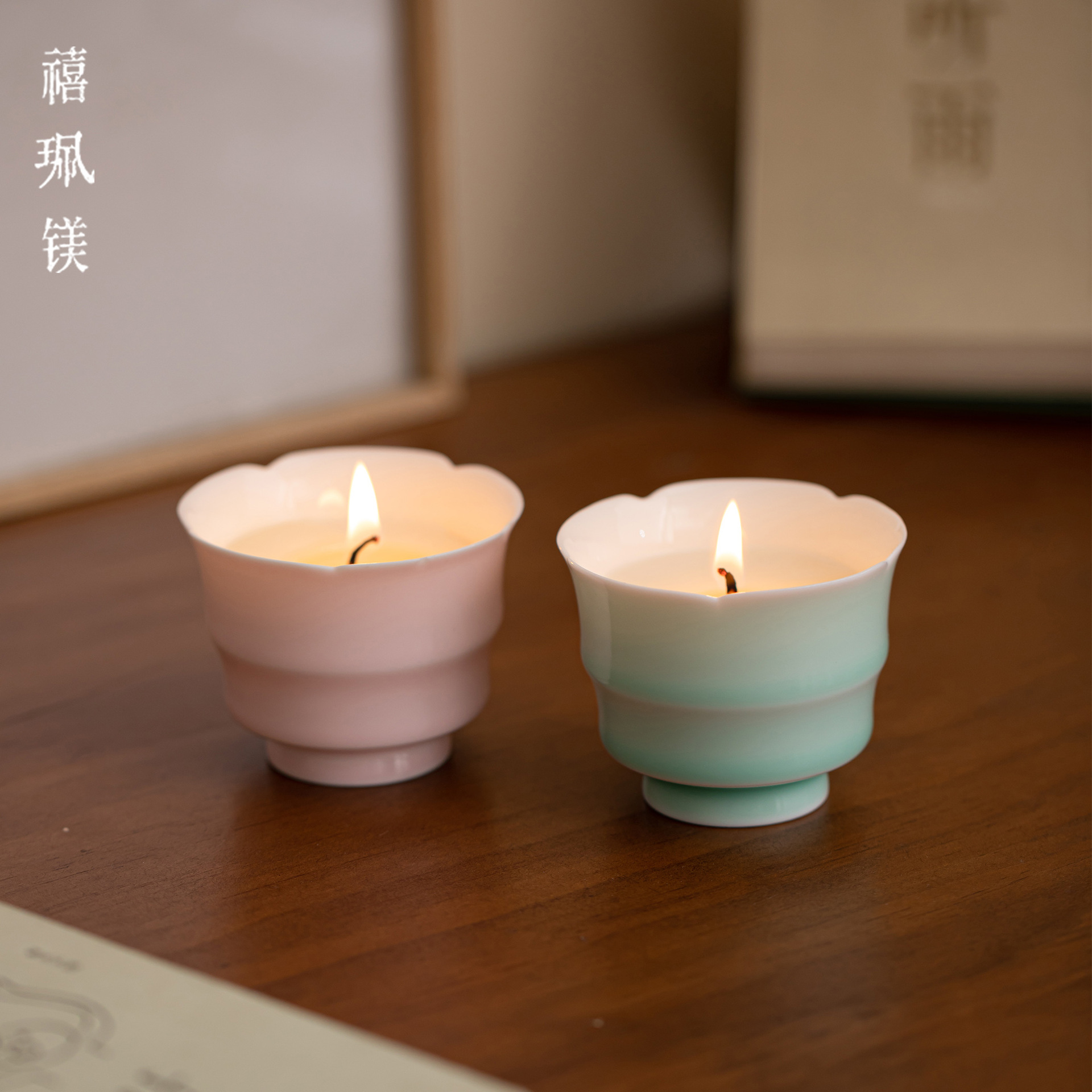 禧マグネシウム香薫ろうそく杯陶磁器清新茶杯室内茶室持続ろうそく雰囲気燭台創意置物