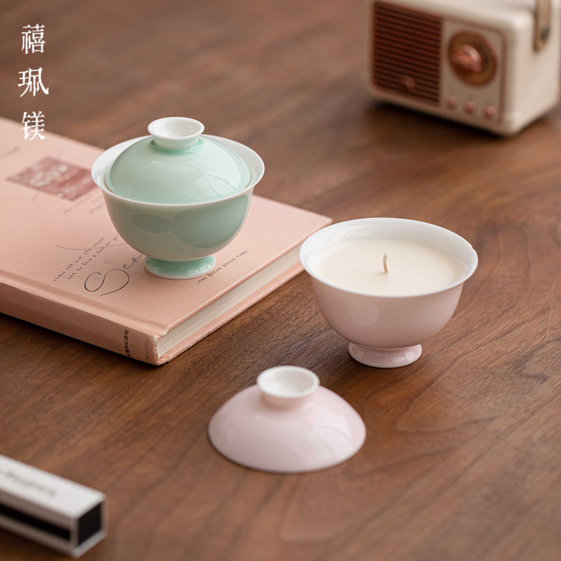 禧マグネシウム新中国式香薫ろうそく小清新陶磁器蓋碗茶室室内持続香薫雰囲気置物