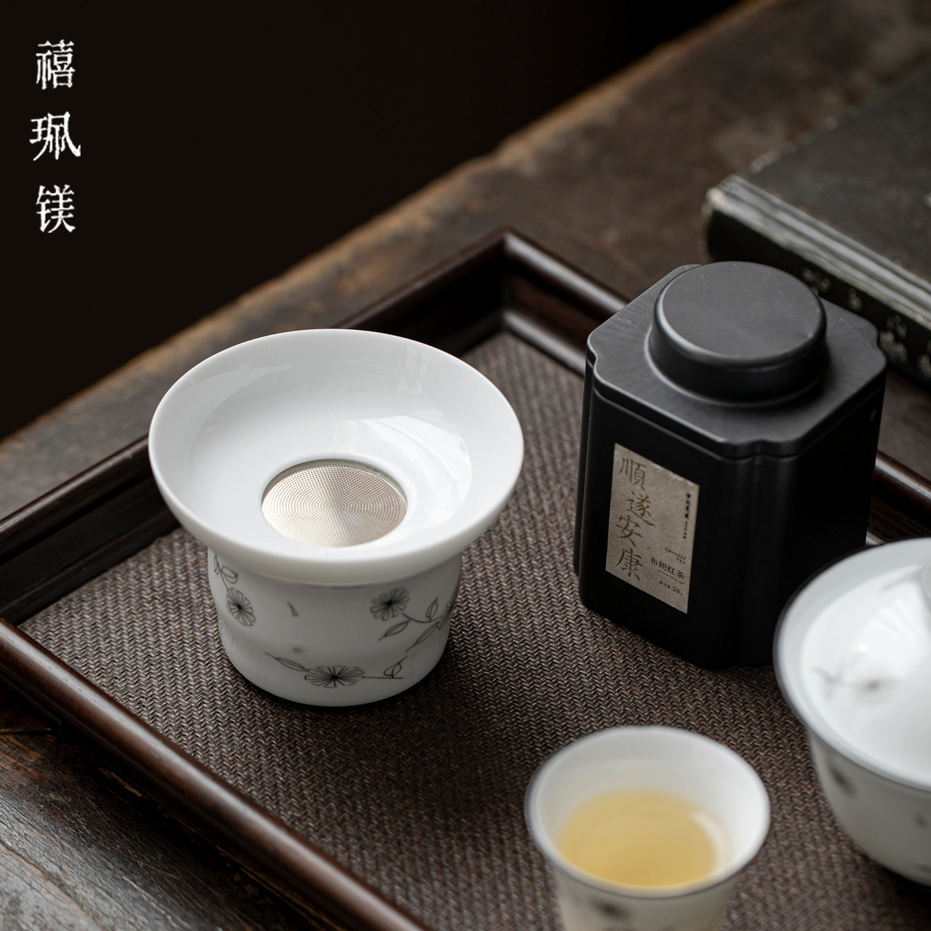 禧マグネシウム白磁スケッチデイジー茶漏れセット陶磁器工夫茶器部品ステンレスフィルター