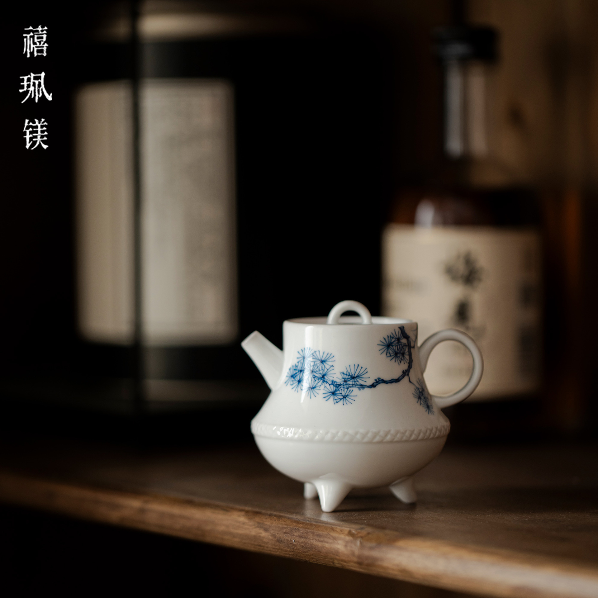 禧マグネシウム玉泥手描き松峰白磁ティーポット三鼎泡ティーポット