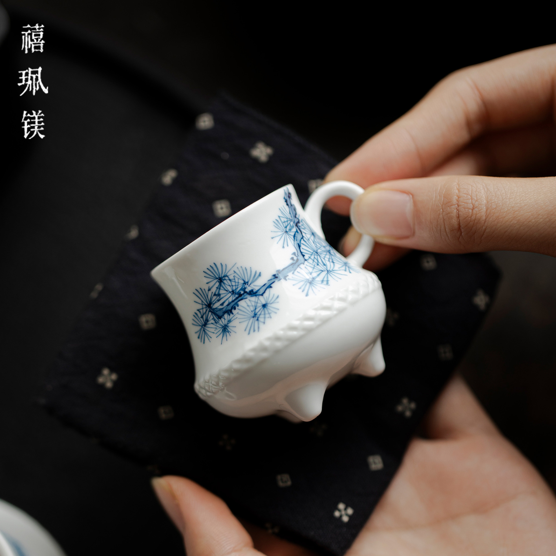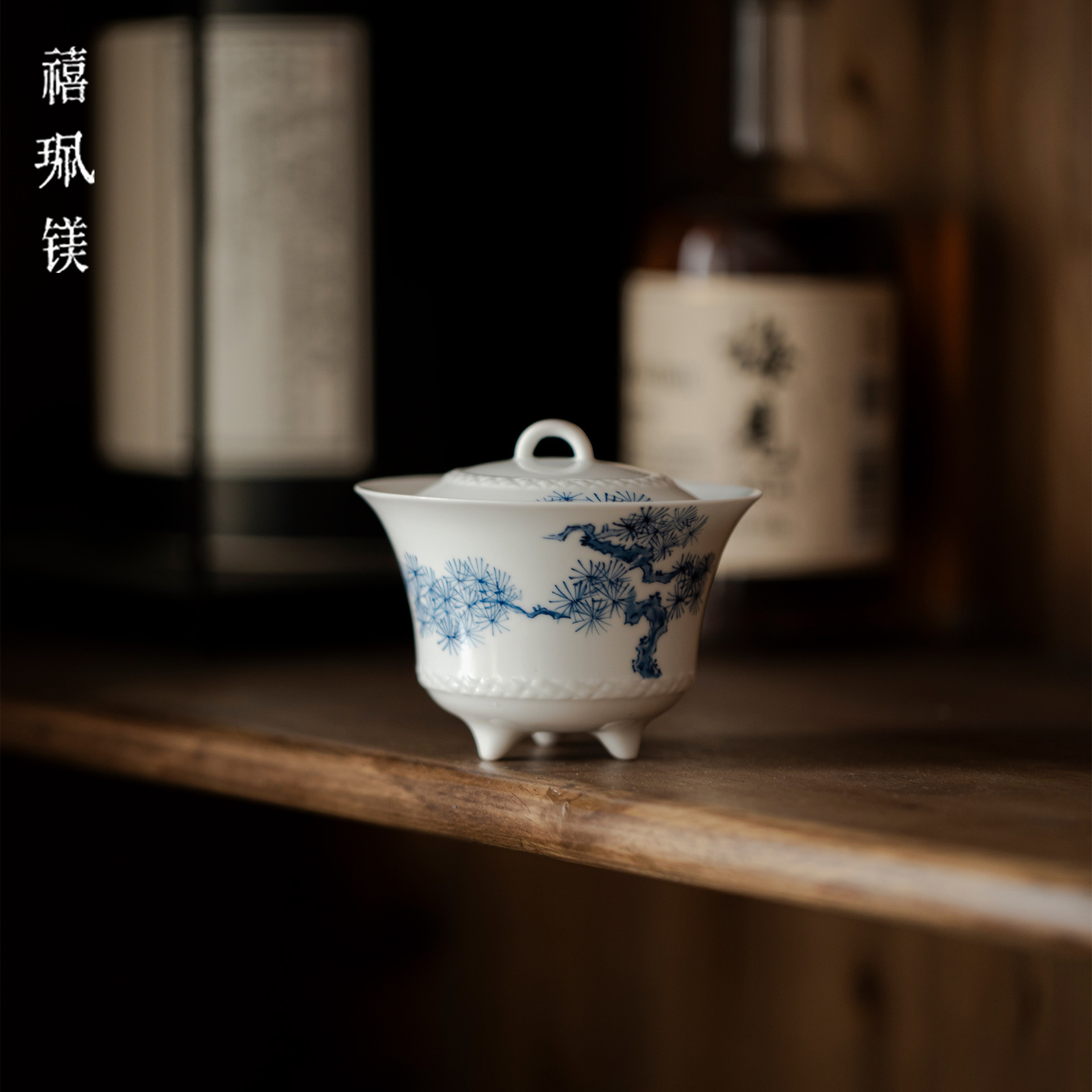 禧マグネシウム玉泥手描き松峰三足鼎白磁器家庭用工夫茶器