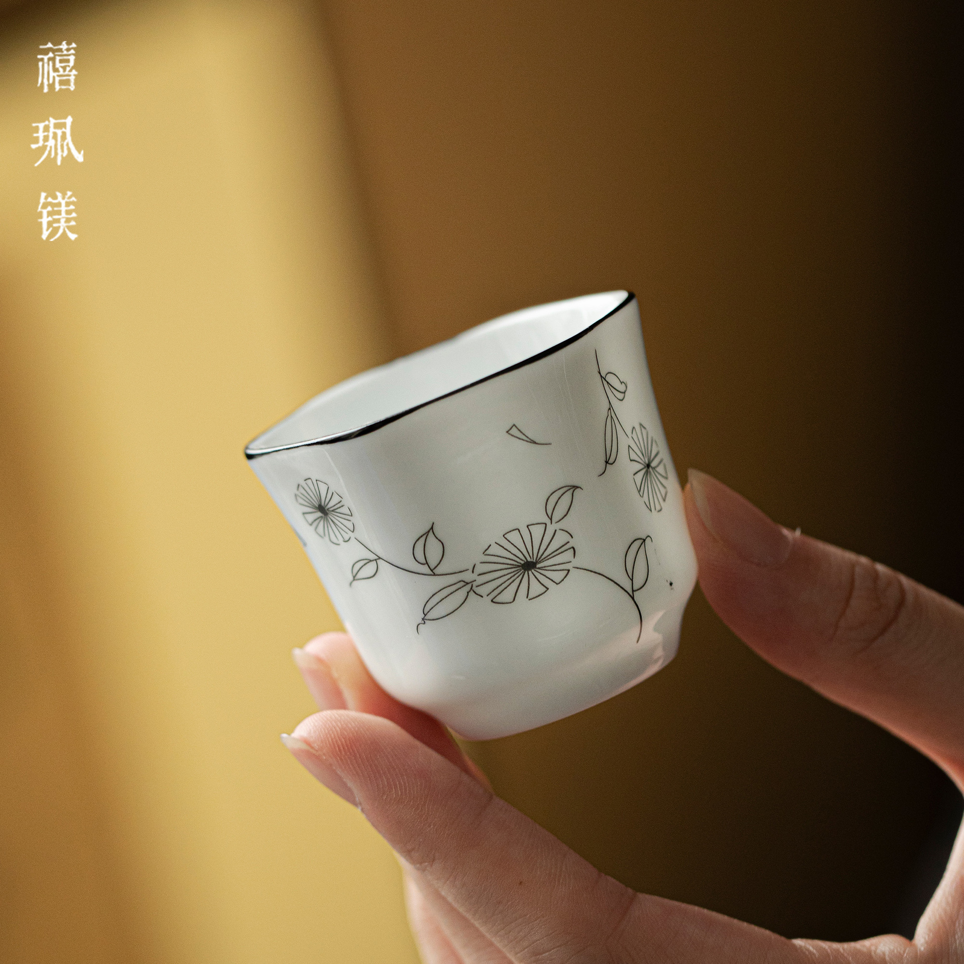 禧マグネシウム白磁スケッチデイジーカップ工夫茶器陶磁器品茗杯お茶単杯六角カップ客杯