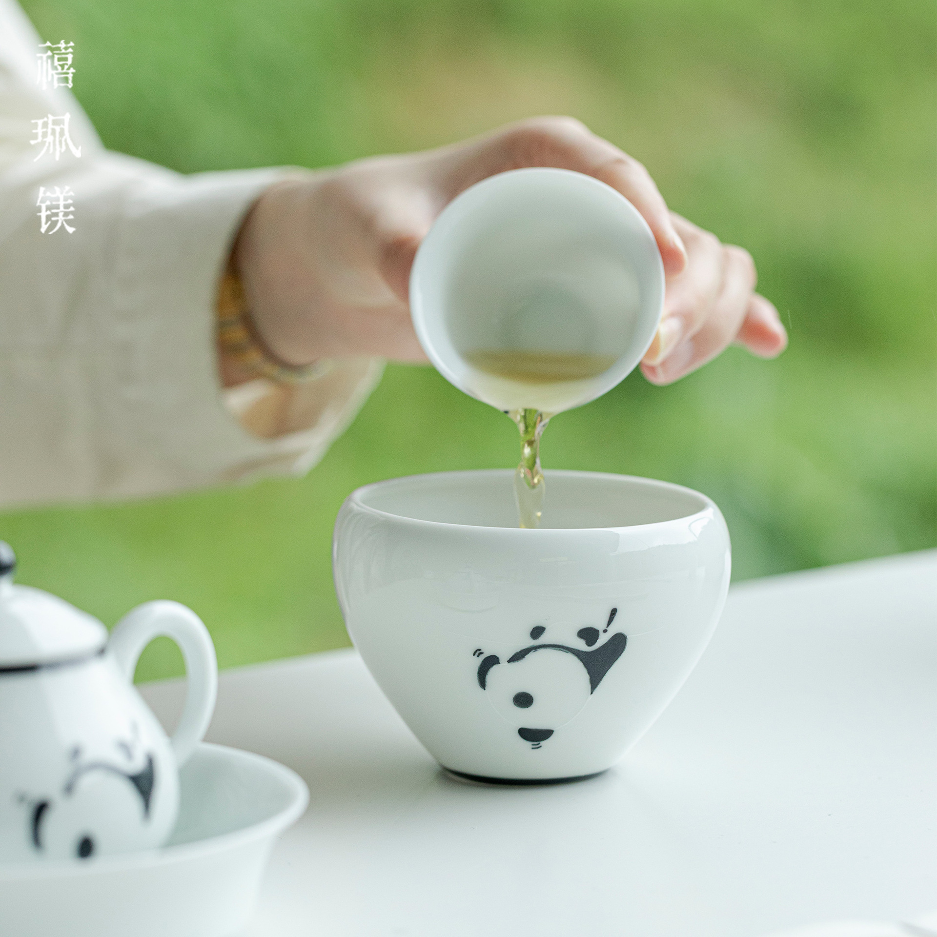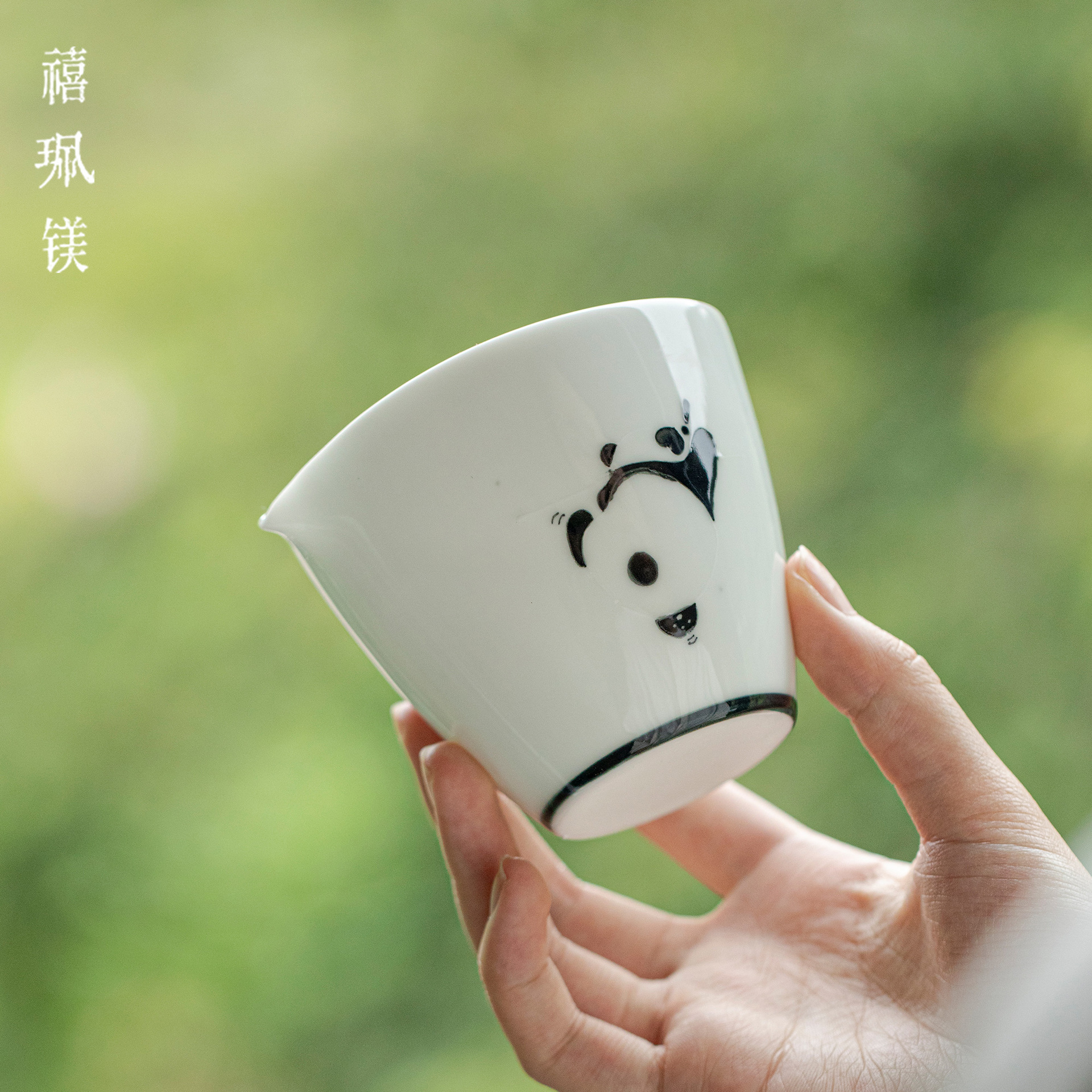 禧マグネシウム公道杯白磁手描きかわいいパンダ団子陶磁器茶海分茶器家庭茶芸でお茶を飲む
