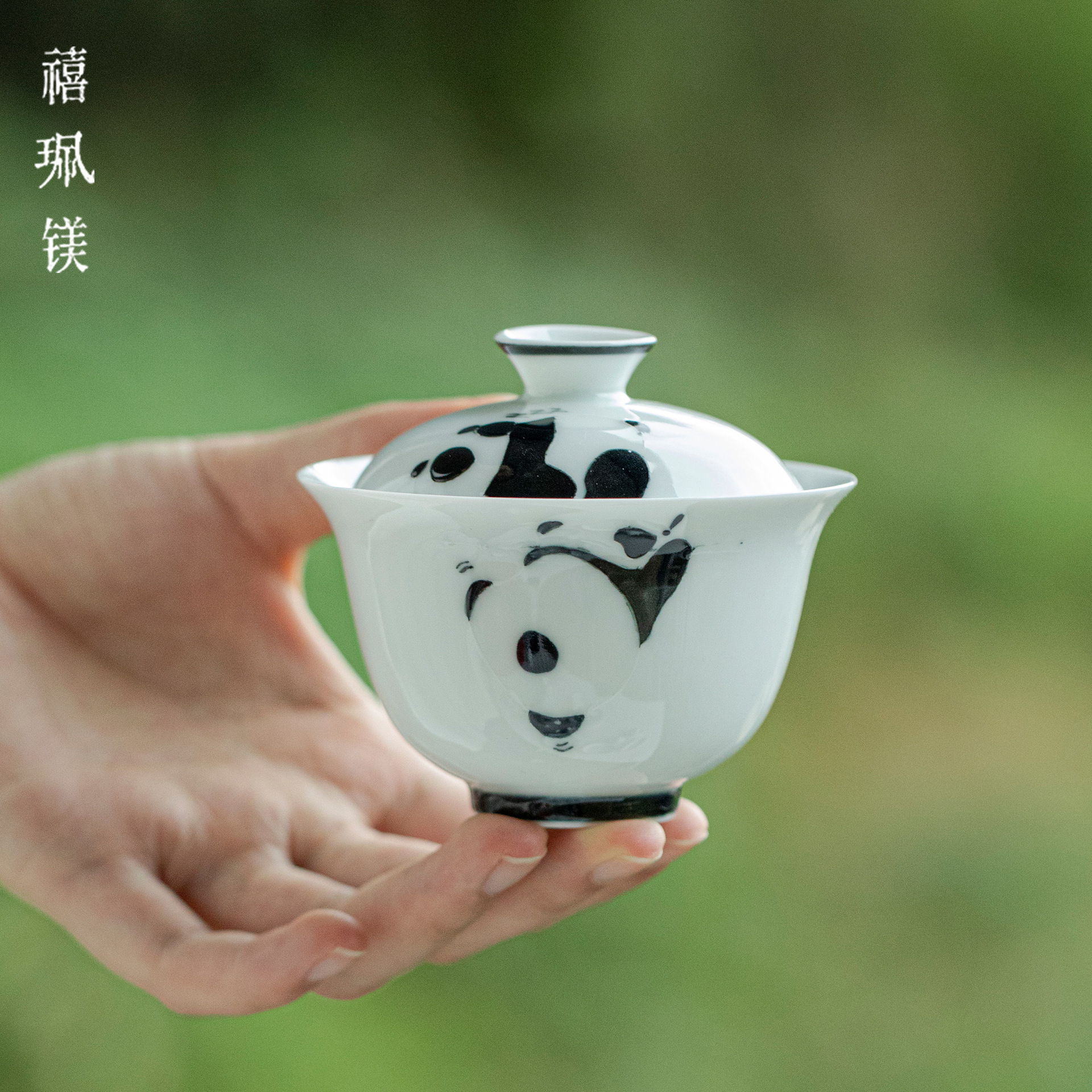 禧マグネシウム蓋碗釉薬下彩手描きかわいいパンダ団子陶磁器泡茶器家庭用タイヤは手を温めないカップ