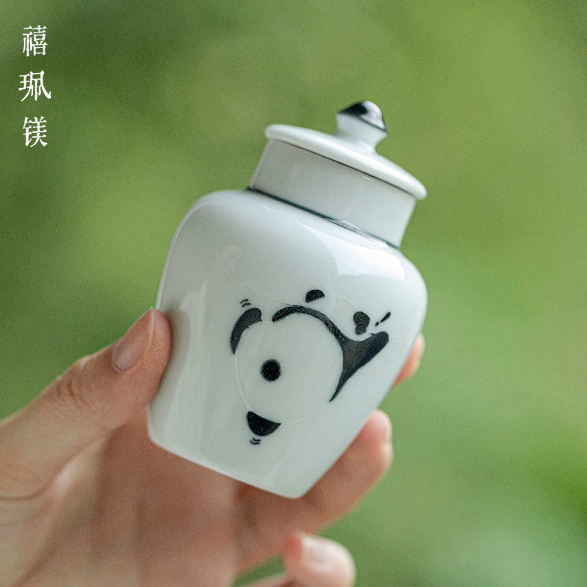 禧マグネシウム茶葉缶手描きかわいいパンダ団子陶磁器密封缶トランペット茶葉携帯貯蔵缶ミニ
