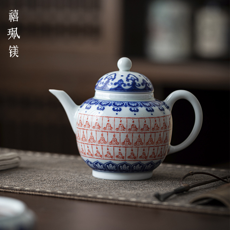 禧マグネシウム敦煌千仏陶磁器ティーポット大容量ボール穴濾過泡ティーポット家庭用単壺青花手執壺