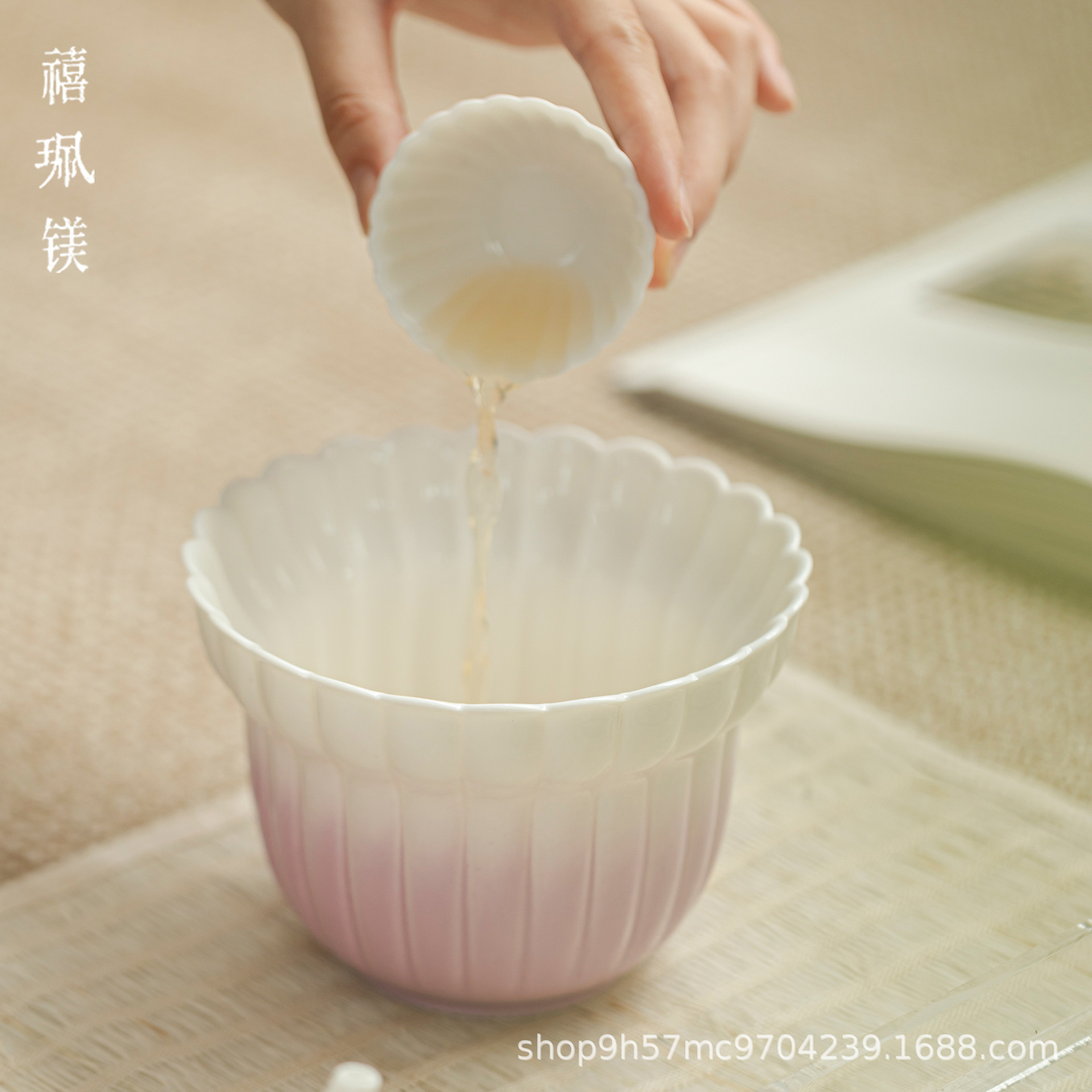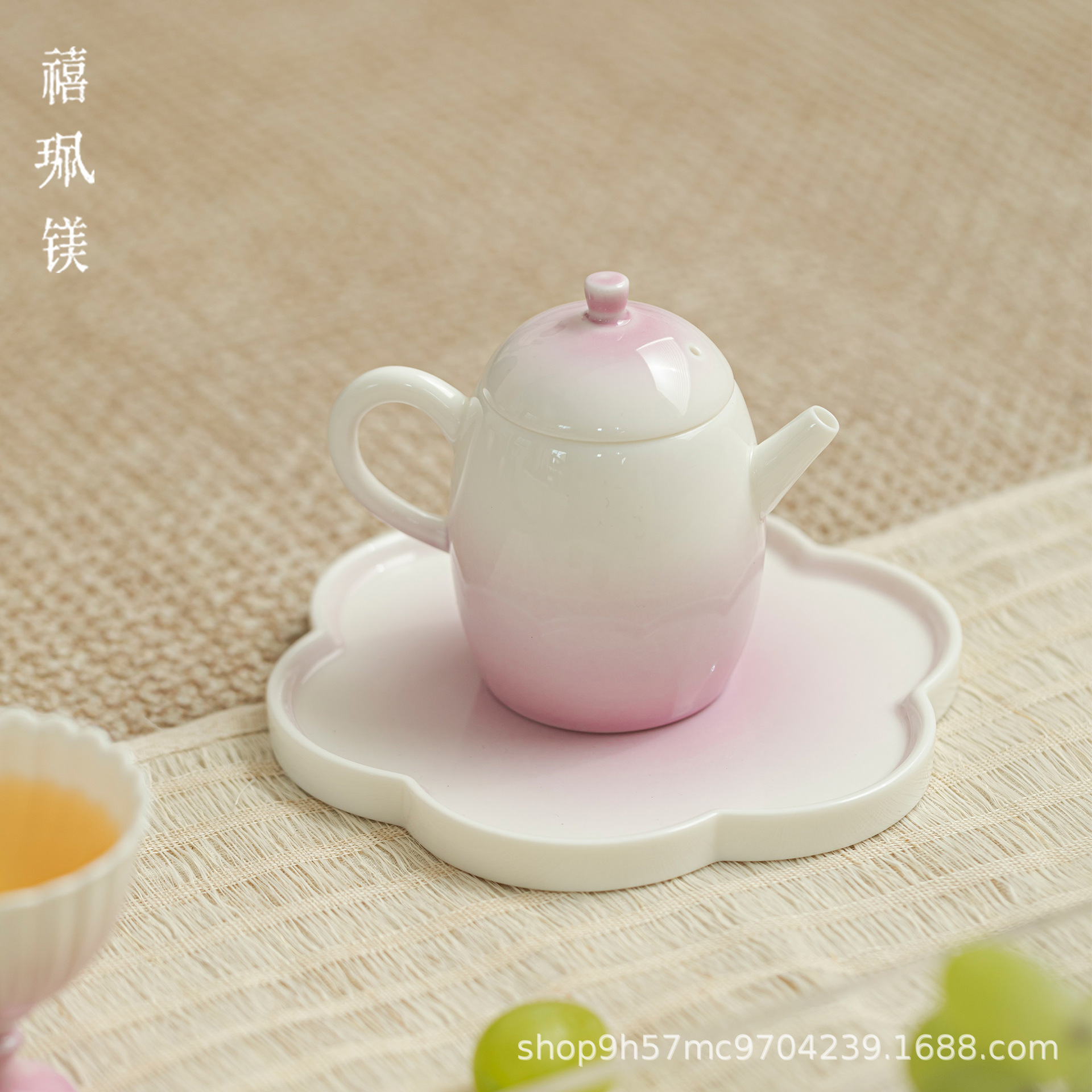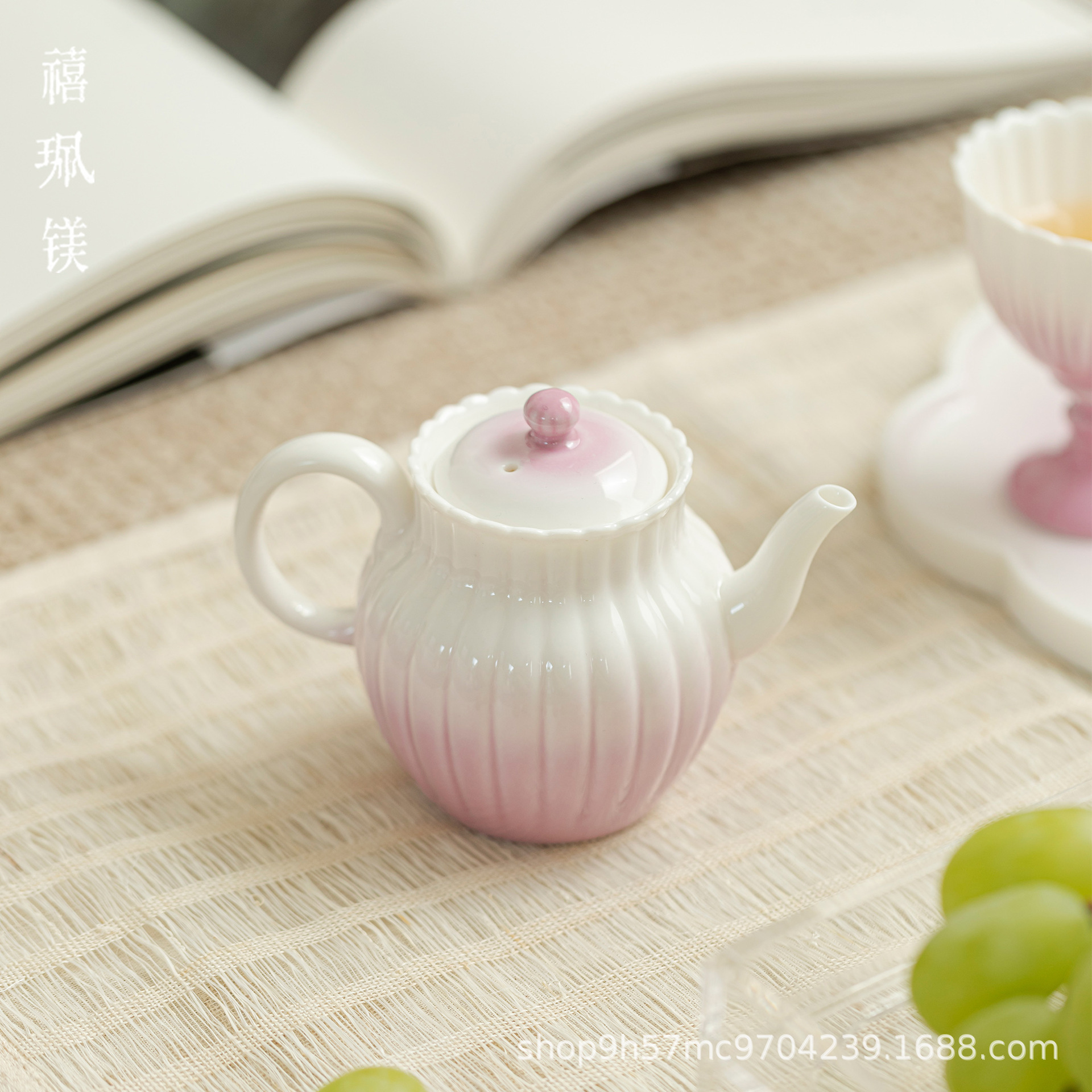 禧マグネシウム遠山紫グラデーション菊弁ティーポット陶磁器ボール穴濾過泡ティーポット女性手執壺白磁単壺