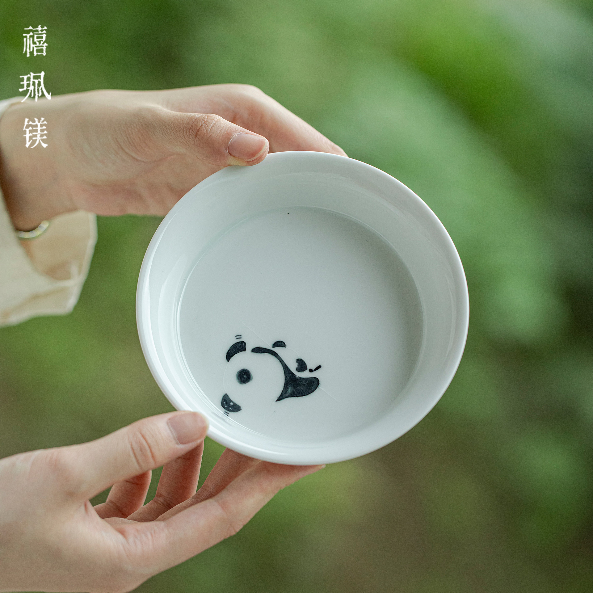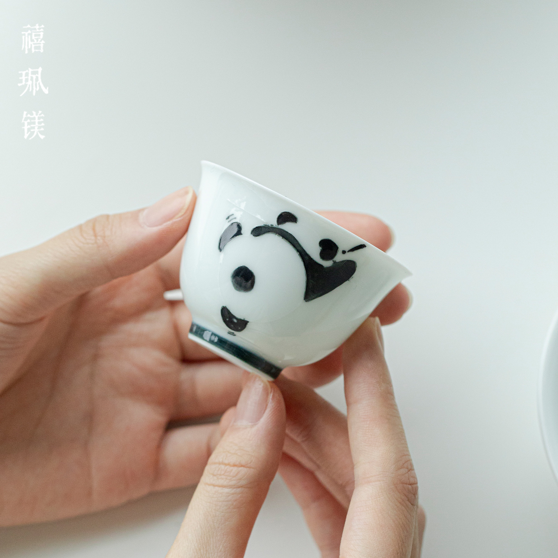 禧マグネシウムカップ白磁釉薬下彩手描きかわいいパンダ団子品茗杯陶磁器個人シングルカップ工夫茶