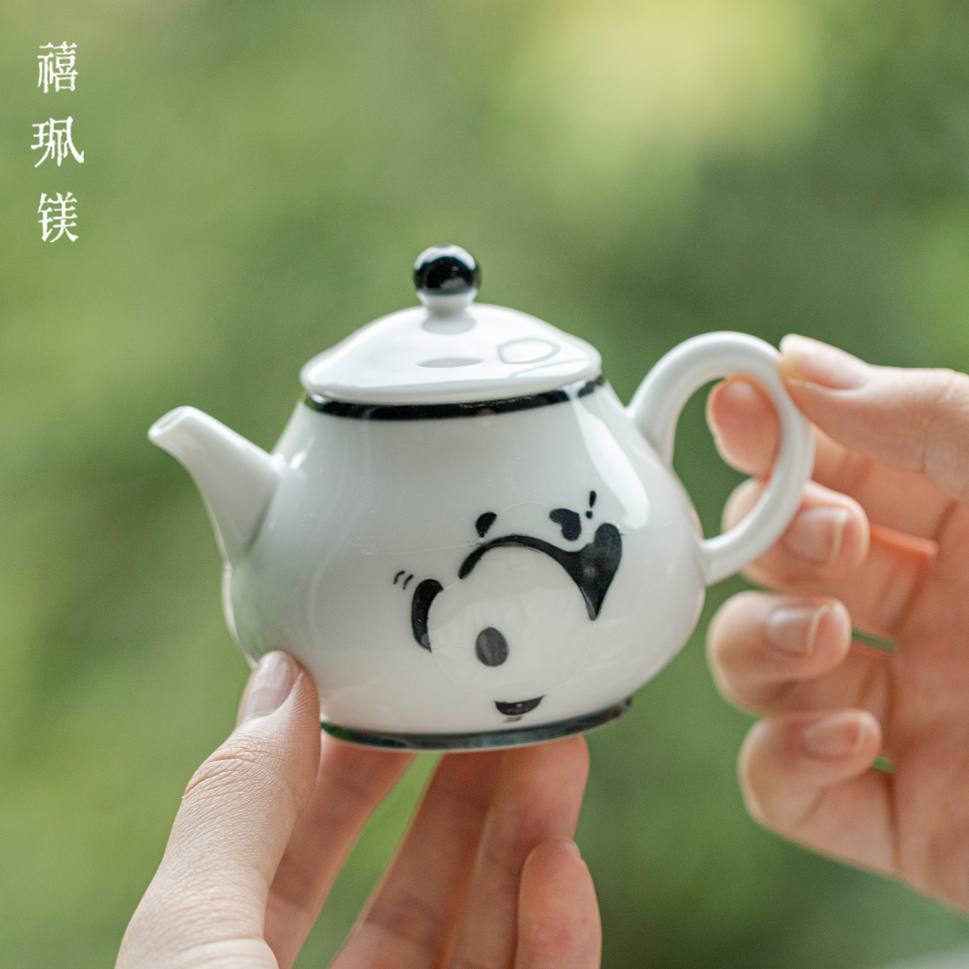 禧マグネシウムティーポット白磁器手描きかわいいパンダ団子陶磁器泡ティーポット家庭用ソフト萌え癒し女性シングルポット