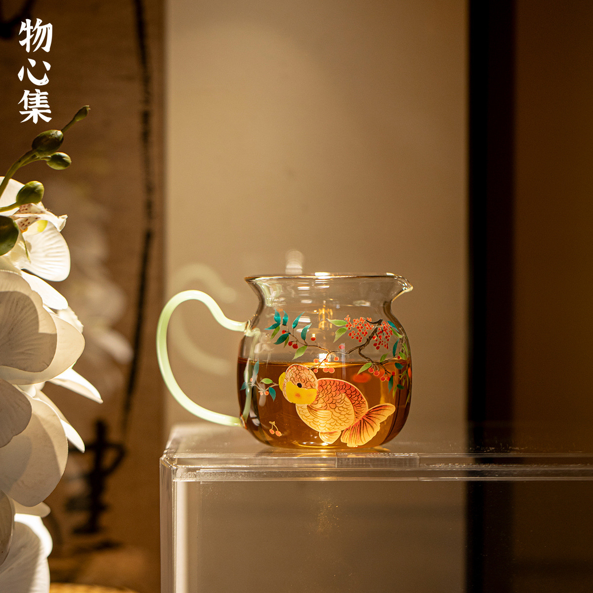 Wuxinji 高ホウケイ酸耐熱ガラス、熱くないグリーンアンバーのハンドル付きフェアカップ、家庭用ティーディバイダー、均一カップ