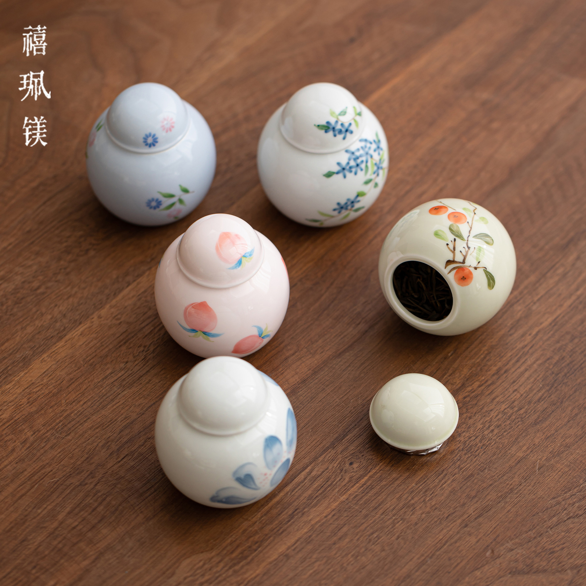 禧マグネシウム釉薬下彩手描きミニ陶磁器茶葉缶密封香粉缶携帯携帯携帯小サイズ茶葉保存