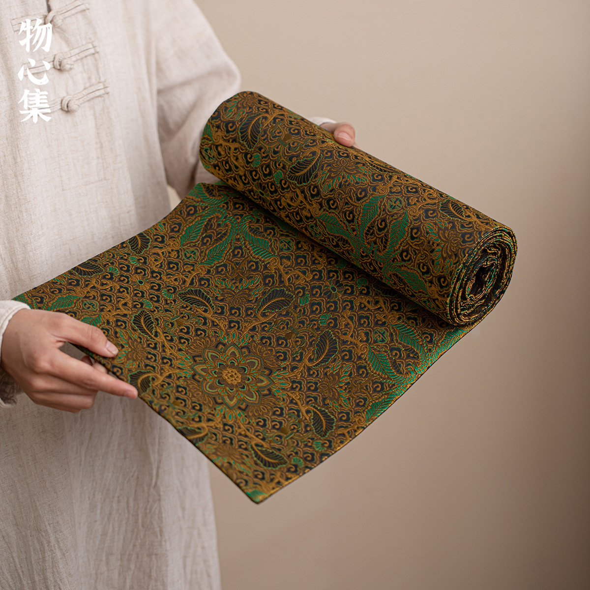 物心集復古織錦ジャカード両面茶席中国式禅意茶テーブルマット茶台防水マット断熱マット長方形