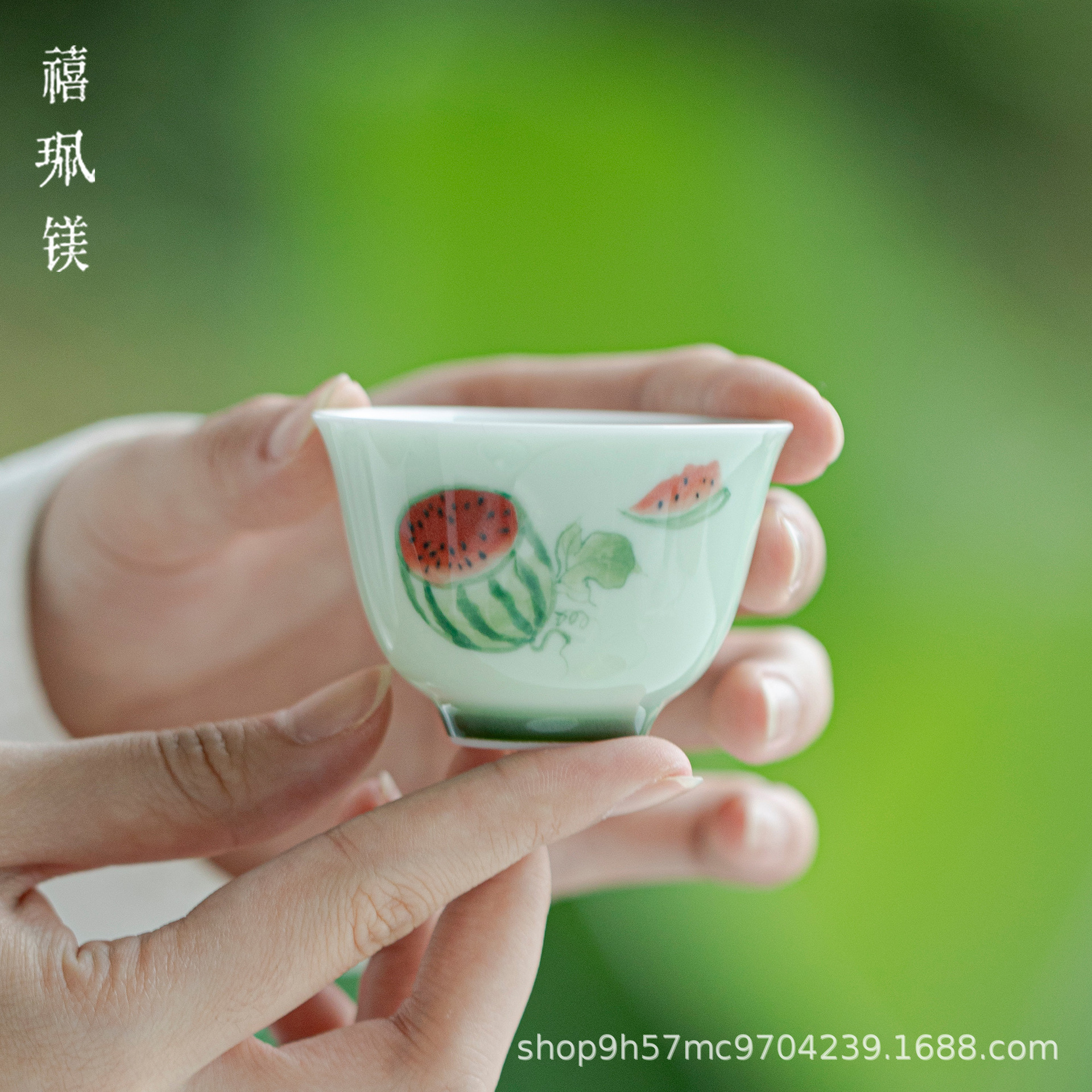 禧マグネシウムカップ小清新手描きスイカ品茗杯陶磁器果緑茶カップ家庭用客カップ単杯