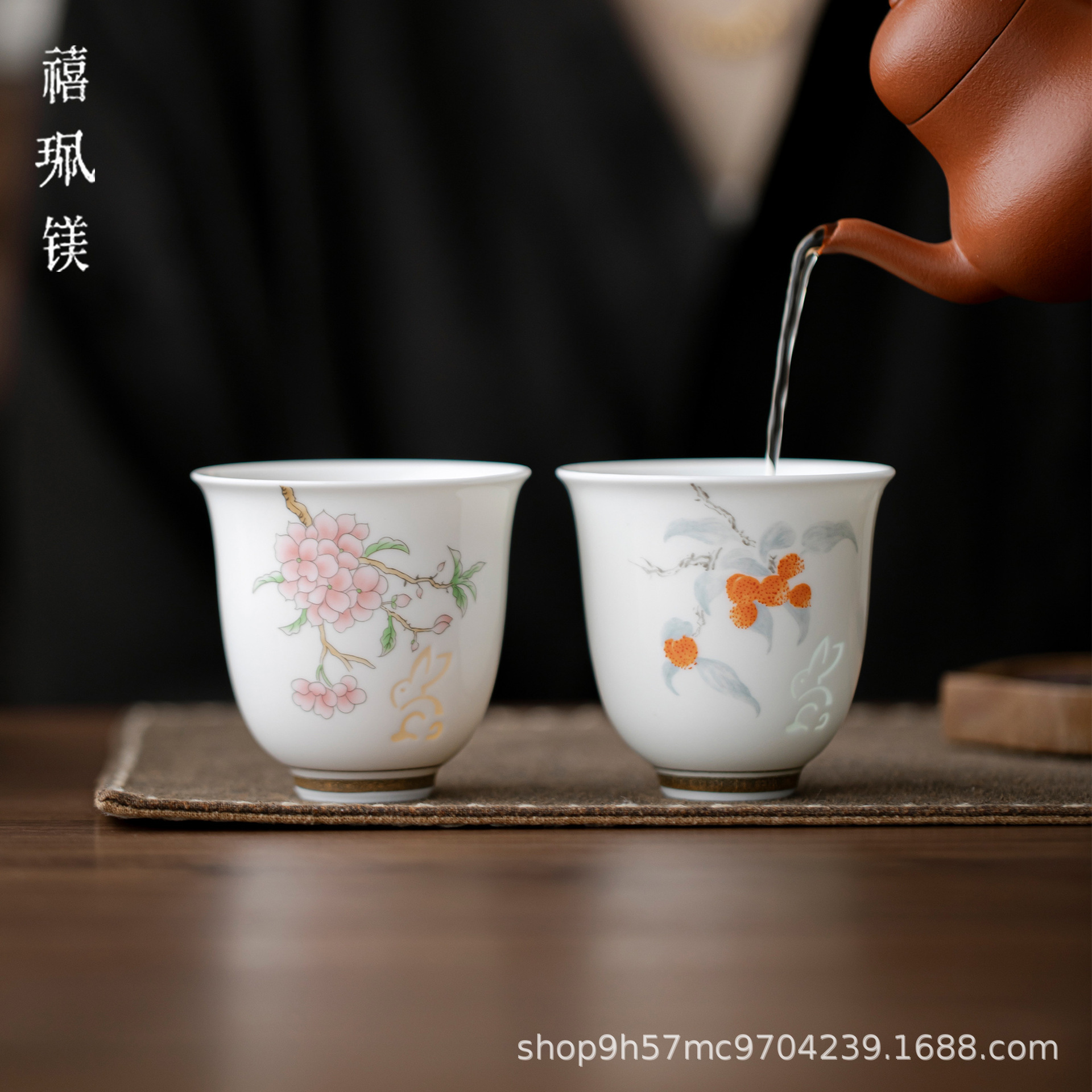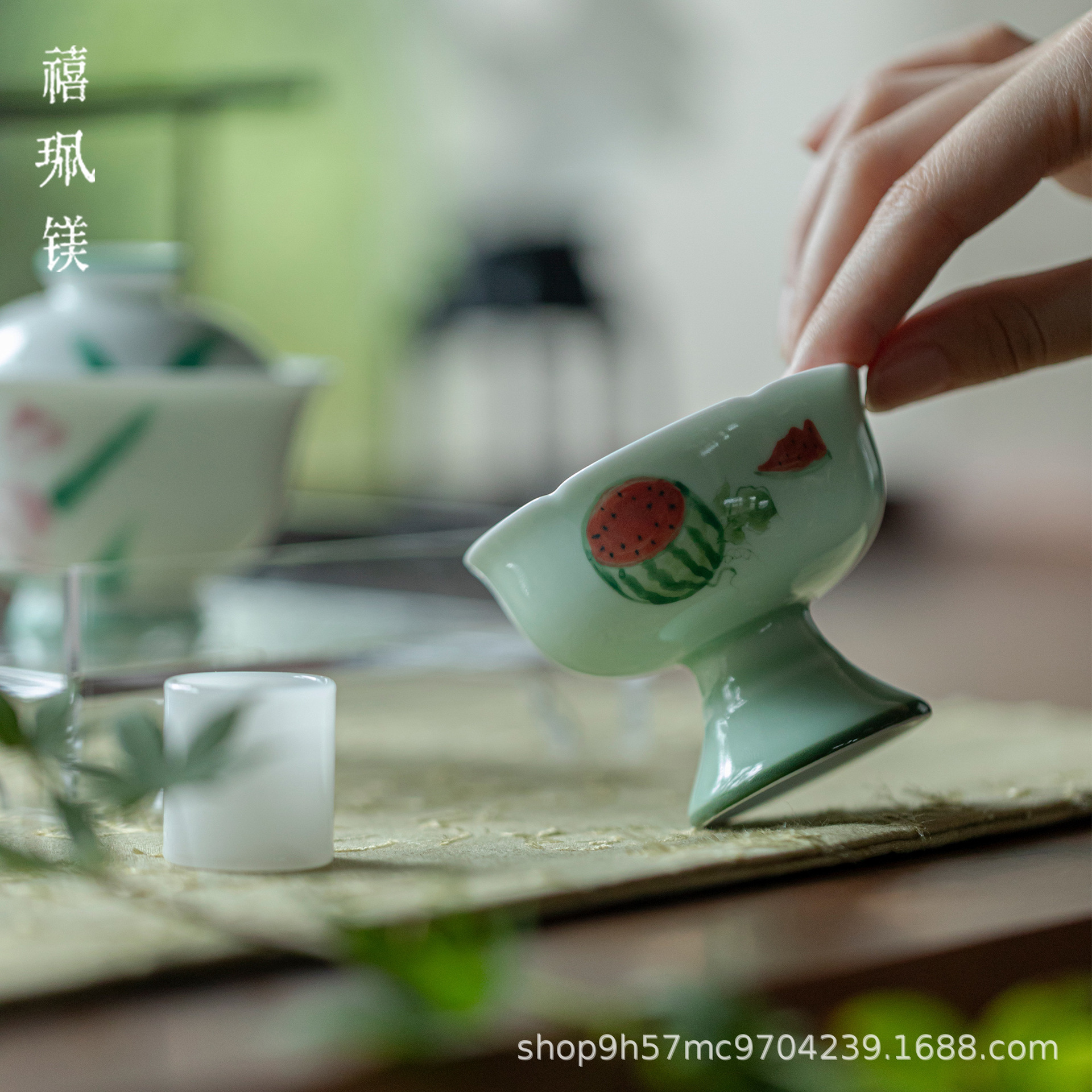 禧マグネシウム主人杯小清新手描きスイカ模造宋高足品茗杯家庭用陶磁器個人カップカップ
